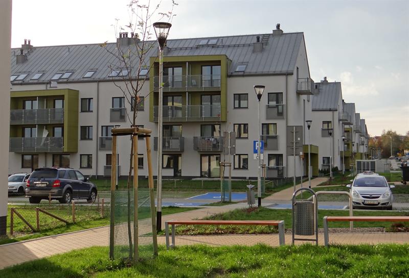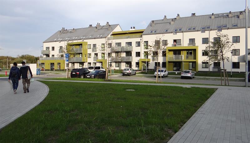 Budynki, które powstały na gruncie przyległym do ul. Szosa Polska przy urządzonych od podstaw także nowych dwóch ulicach Józefa Romana i Bronisława Sobala, to inwestycja Szczecińskiego Towarzystwa Budownictwa Społecznego. W założeniu to pierwszy jej etap. W planach spółki jest kolejny, o ile znajdą się na jego realizację odpowiednie fundusze. Domy, jak również całe otoczenie, z infrastrukturą, elementami małej architektury, placem zabaw i boiskiem do koszykówki zaprojektowała szczecińska Grupa Projektowa DOMINO. Wykonawcą była spółka EBUD „Przemysłówka” z Bydgoszczy.