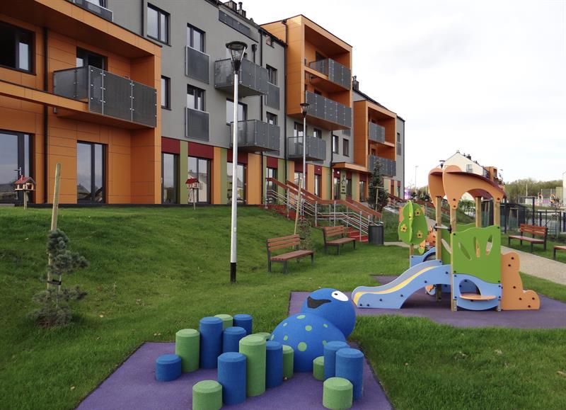 Osiedle przy ulicach Józefa Romana i Bronisława Sobala obecnie tworzy 9 budynków: sześć dwuklatkowych, dwa trzyklatkowe i jeden czteroklatkowy. Wszystkie mają po cztery kondygnacje (parter, dwa piętra i poddasze). Nie są one podpiwniczone. Wzniesione zostały w technologii tradycyjnej, kryte są dachami stromymi. W czterech budynkach znalazło się po jednym lokalu mieszkalnym przystosowanym do potrzeb osoby niepełnosprawnej poruszającej się na wózku. Powstały łącznie 274 lokale mieszkalne, trzy lokale usługowe przeznaczone na wynajem, publiczny żłobek pn. „Zając Borówka” dla 60 dzieci, „inkubator” – mieszkanie dla usamodzielniających się wychowanków pieczy zastępczej, dwa mieszkania chronione przeznaczone na potrzeby pieczy zastępczej. Ponadto z uwagi na wsparcie finansowe miasta 81 mieszkań przeznaczonych zostało na realizację programów mieszkaniowych gminy.