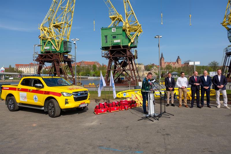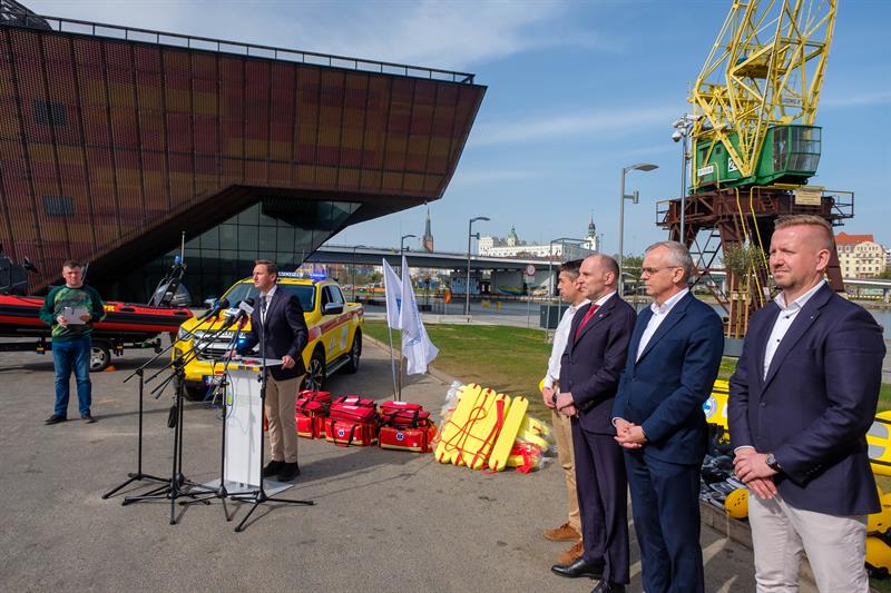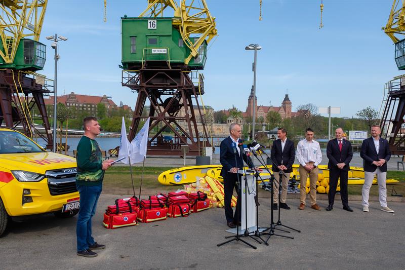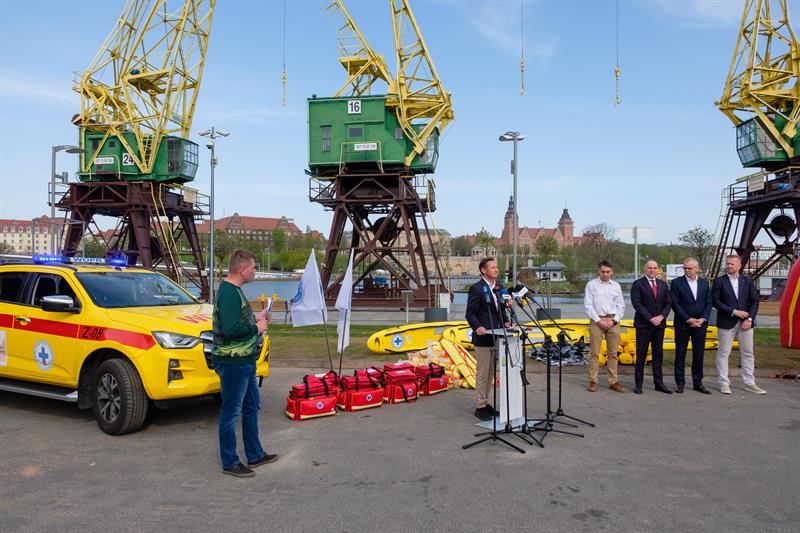 Nowoczesny sprzęt i dodatkowe wsparcie dla Wodnego Ochotniczego Pogotowia Ratunkowego trafiły do ratowników z województwa zachodniopomorskiego. Uroczyste przekazanie wyposażenia oraz podpisanie umowy na dofinansowanie Centrum Koordynacji Ratownictwa Wodnego w Szczecinie odbyło się 17 kwietnia na szczecińskim Nabrzeżu Starówka.