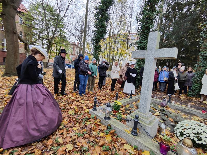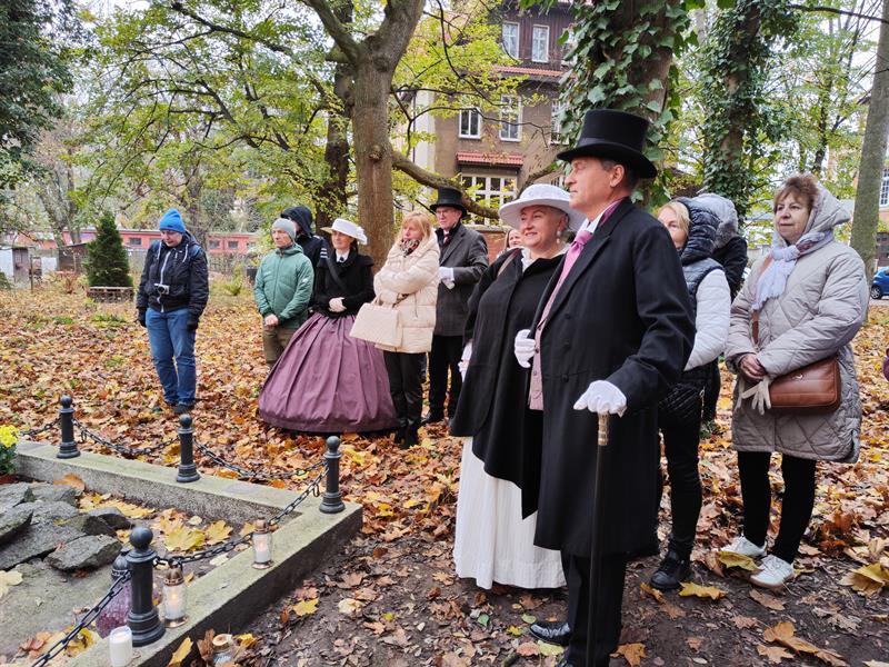 Od nieprzypadkowego miejsca go rozpoczęły, bo od zespołu budynków dawnego zakładu opiekuńczego „Betania", którego fundatorem był właśnie JQ, a też na którego terenie spoczął wraz z bliskimi. Właśnie na jego odrestaurowanej rodzinnej mogile uczestnicy spaceru - niektórzy w strojach z epoki - symbolicznie zapalili znicze i złożyli kwiaty.