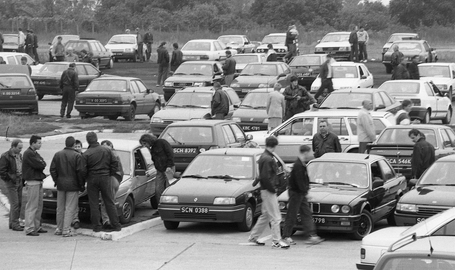 W zasadzie wielce dyskusyjne jest, czy zdjęcia znalezione w archiwum Kurierowego fotoreportera Dariusza Janowskiego są wspomnieniem czarownych czasów. Za to z pewnością są świadectwem czasów ciekawych. Oto Szczecin, początek lat dziewięćdziesiątych XX wieku, korona stadionu Pogoni i jego okolice (tak, tak!). Giełda samochodowa na Pogodnie, to było miejsce wręcz kultowe dla świeżo uwolnionych z okowów „socjalistycznej gospodarki" obywateli spragnionych czterech kółek (czy choćby jednego, zapasowego), ale także mało wyrafinowanego, choć budzącego równie wielkie co ruletka w Monte Carlo emocje hazardu (trzy kubki!) czy ciekawej oferty odzieżowo - obuwniczo - spożywczej. Panie, panowie, tacy byliśmy ćwierć wieku temu...