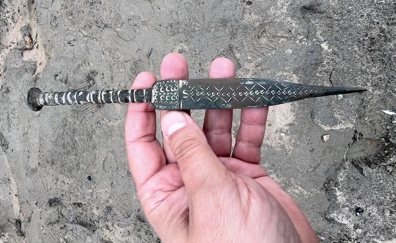 Sztylet, którego wiek szacowany jest na 2800 lat (okres halsztacki, wczesna epoka żelaza), znaleziony został w niedzielę na plaży w zachodniej części polskiego Wybrzeża Bałtyku. Wykrywaczem metali zlokalizowali go eksploratorzy z Stowarzyszenia Na Rzecz Ratowania Zabytków im. Św. Korduli w Kamieniu Pomorskim Jacek Ukowski i Katarzyna Herdzik. Bogato zdobiony sztylet, o długości 24,2 cm, znajdował się w gliniastej bryle oderwanej od klifu po sztormie.
