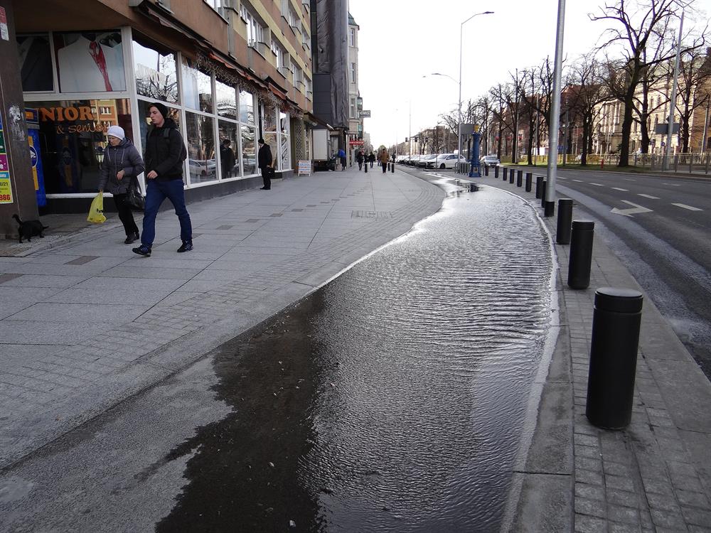 Na zatapiany regularnie fragment odnowionej nie bez trudu i w poślizgach najdroższej szczecińskiej alei (komercyjnie ponoć najatrakcyjniejszej i dlatego z najwyższymi stawkami czynszu za najem lokali) zwarcają uwagę w licznych telefonach również nasi Czytelnicy.