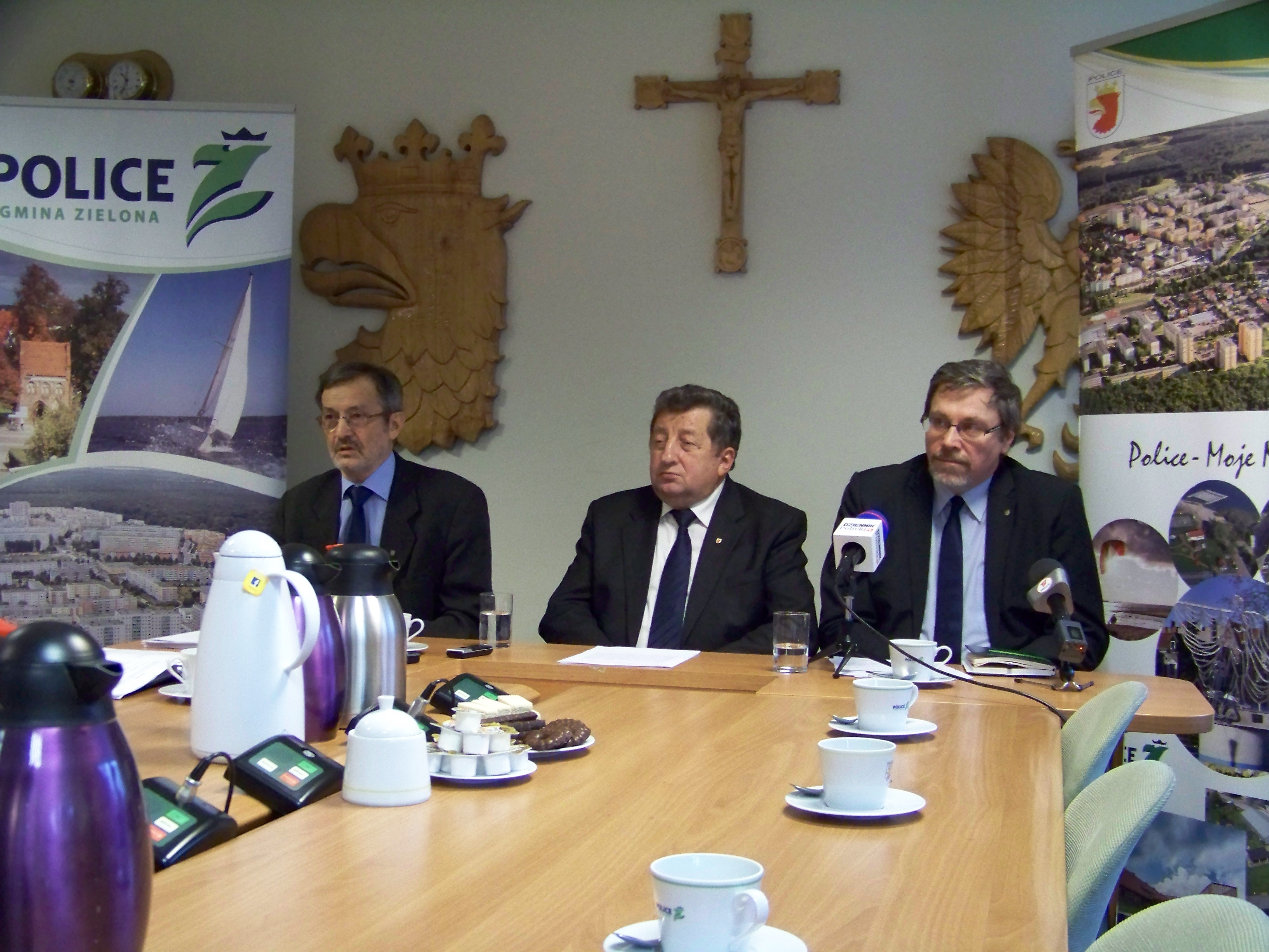 Na zdj.: Od prawej: Wiceburmistrz Maciej Greinert, burmistrz Władysław Diakun i przewodniczący rady miejskiej Witold Król - przedstawiali tryb i zasady konsultacji w sprawie wyboru metody rozliczania mieszkańców za wywóz śmieci.