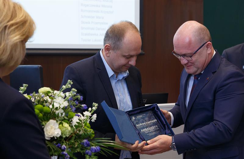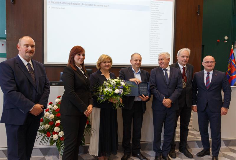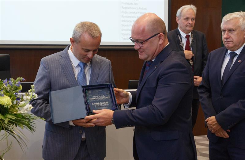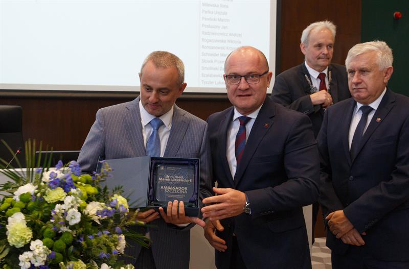 Neurochirurg Marek Lickendorf oraz fotografik Andrzej Łazowski podczas piątkowej uroczystej sesji Rady Miasta Szczecina zostali laureatami honorowego tytułu "Ambasadora Szczecina". Wręczono też Medale za Zasługi dla Miasta: Stefanii Biernat, dr. Bazylemu Baranowi oraz prof. Ryszardowi Wilkowi.