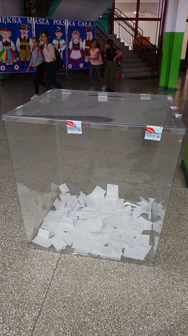Uczniowie w SP 61 w Szczecinie (na zdjęciu u góry), w SP 48 czy SP 68 zorganizowali ją na takich samych zasadach, jak wybory powszechne. Były więc prawdziwe kabiny wyborcze, urna oraz karty do głosowania z listą poszczególnych partii politycznych, lecz bez nazwisk konkretnych kandydatów. Wcześniej uczniowie przeszli szkolenie we Wrocławiu i przeprowadzali ankietę w szkole i poza nią dotyczące wyborczej frekwencji.