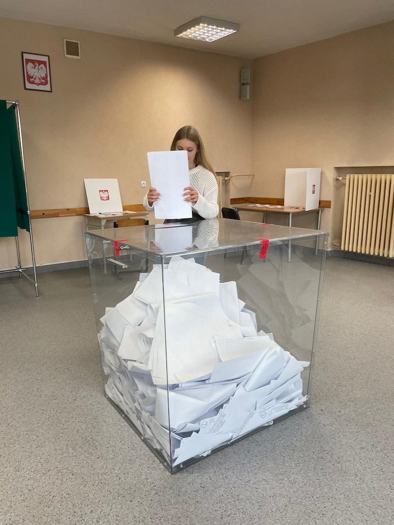 Pierwszy dzień dorosłości świętowała w niedzielę Martyna Bukowska. Pani Martyna przyszła na świat 7 kwietnia - dokładnie 18 lat temu. Swój głos oddała w Komisji nr 144 mieszczącej się w Zespole Szkół Samochodowych przy ulicy Sebastiana Klonowica 14 w Szczecinie.