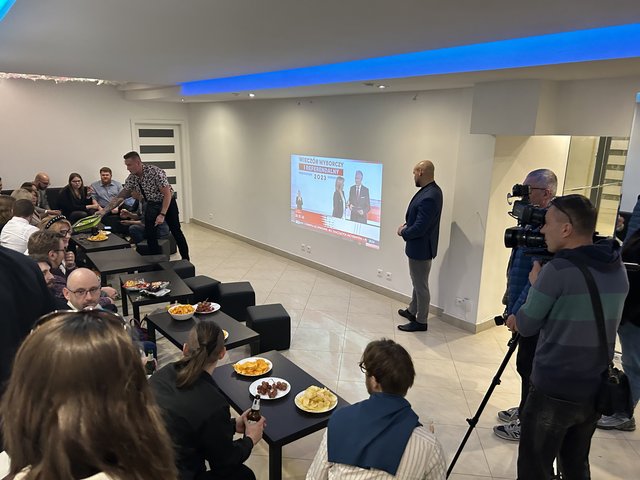 Lider listy poseł Jarosław Rzepa spokojnie wypija kolejną kawę. Wieczór wyborczy rozpoczęto od podziękowań wszystkim, którzy włożyli swój wysiłek w pracę na rzecz sukcesu wyborczego. Adam Rudawski i Jarosław Rzepa byli zgodni, że mogą się spodziewać dobrego, o ile nie bardzo dobrego wyniku.