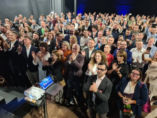 Około godziny 20.30 szczecińscy uczestnicy sztabu wyborczego Trzeciej Drogi połączyli się warszawską siedzibą sztabu wyborczego. Na ekranie pojawił się Władysław Kosiniak-Kamysz, który był pełen optymizmu. Emocje rosną - "Zielone Patio", gdzie zgromadzili się sympatycy Trzeciej Drogi, pomału zapełnia się kolejnymi uczestnikami wieczoru wyborczego.