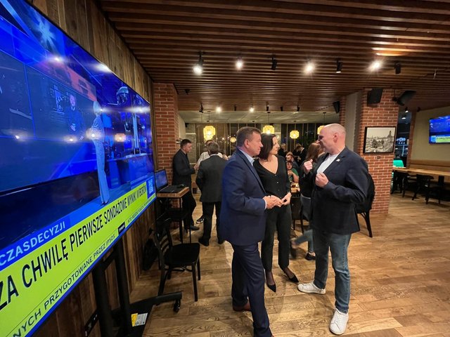 Minęła godzina 22. Trwa wieczór wyborczy w lokalu "Zielone Patio" gdzie zebrali się sympatycy i aktywiści Trzeciej Drogi. Wśród zebranych panuje radość i nadzieja. - Ufam, że w Polsce wróci normalność - mówił w kuluarach Jarosław Rzepa, lider listy. - Różnimy się z KO oraz z Lewicą, ale bez problemu wypracujemy wspólnie kompromisy. Teraz pora realizować nasze hasło "Dość kłótni - Do przodu!".
