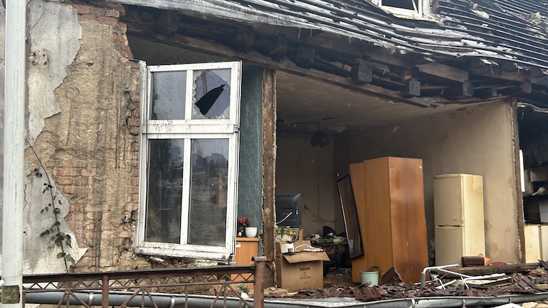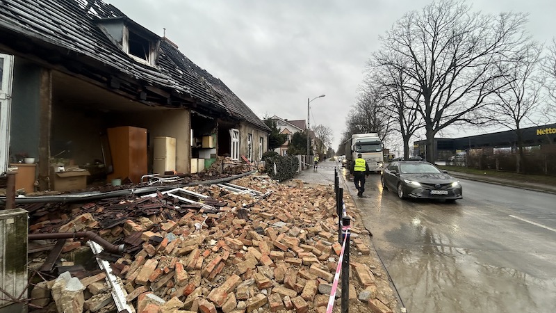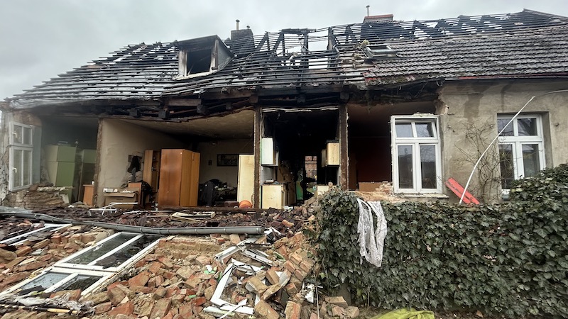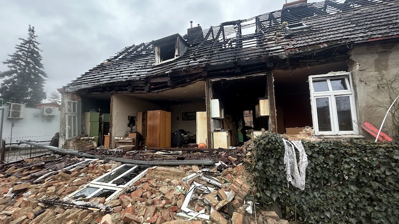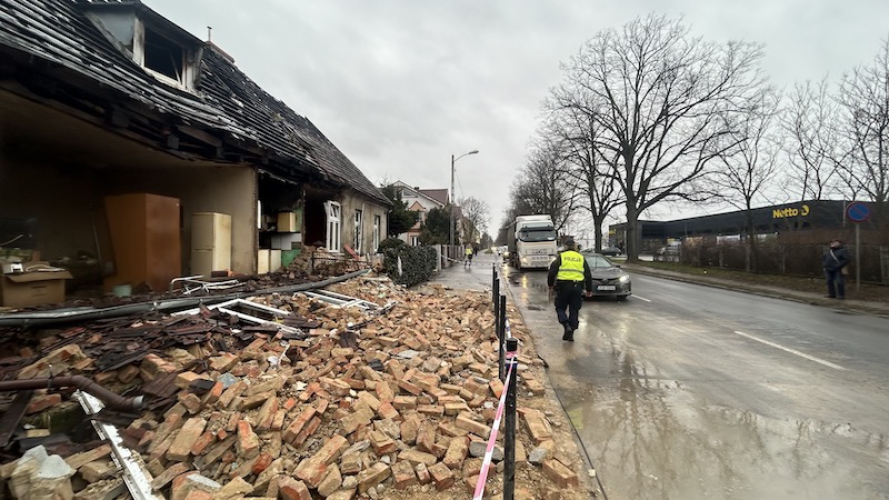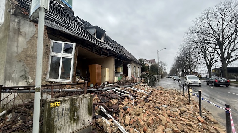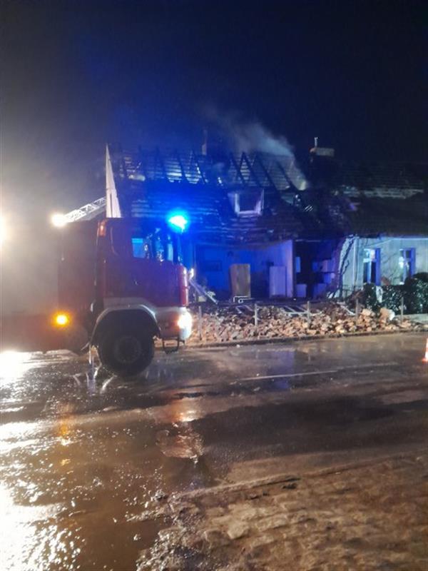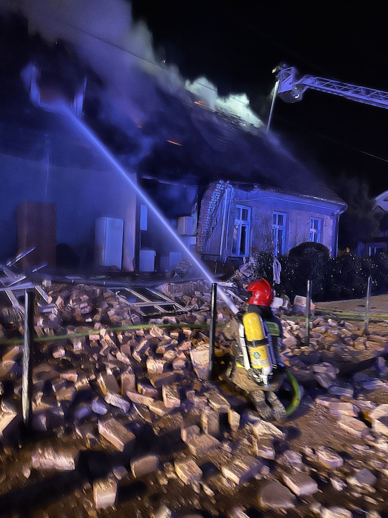 Budynek jest częściowo zniszczony. Jego stan ocenia nadzór budowlany. Straż pożarna już zakończyła działania. Na miejscu są policja oraz strażnicy miejscy.