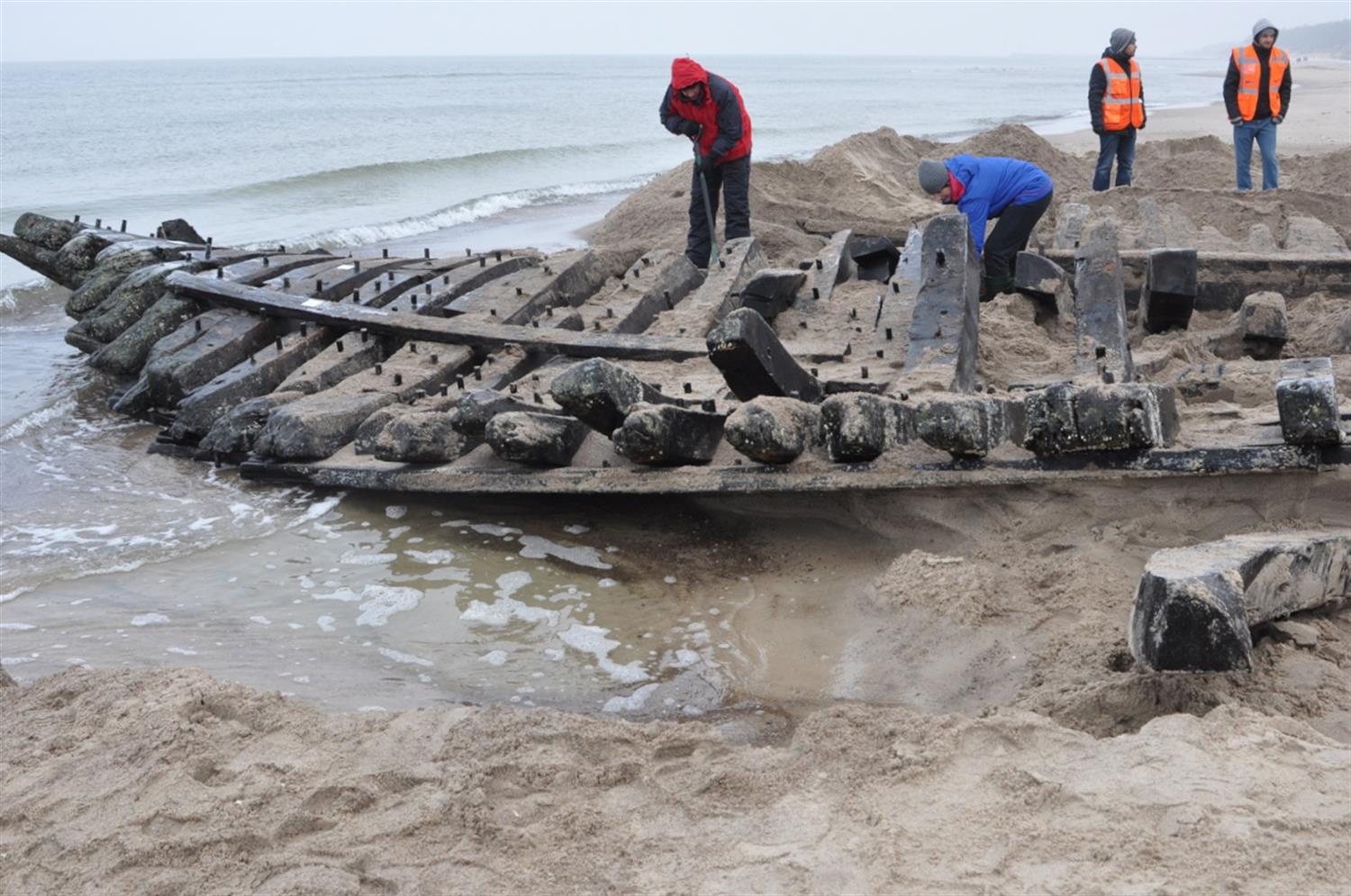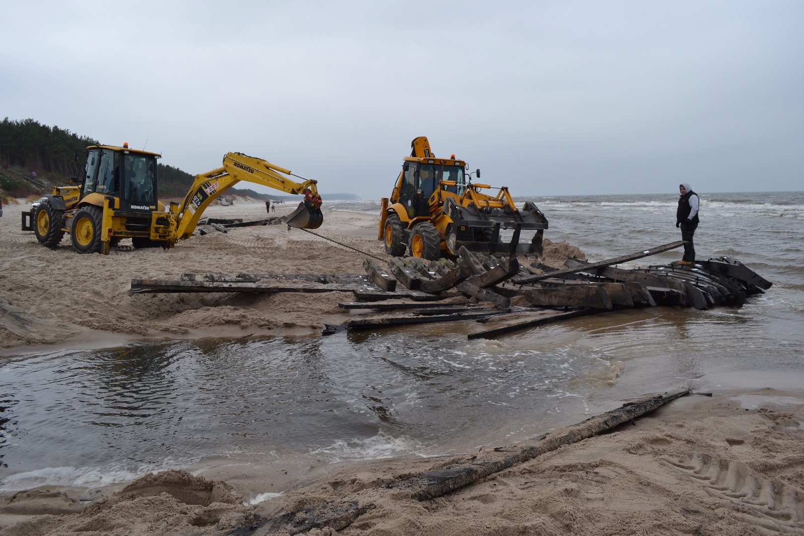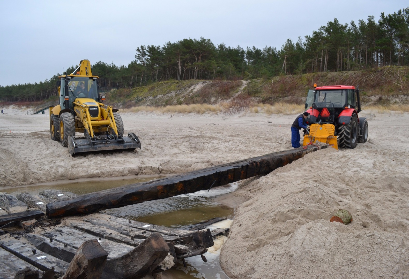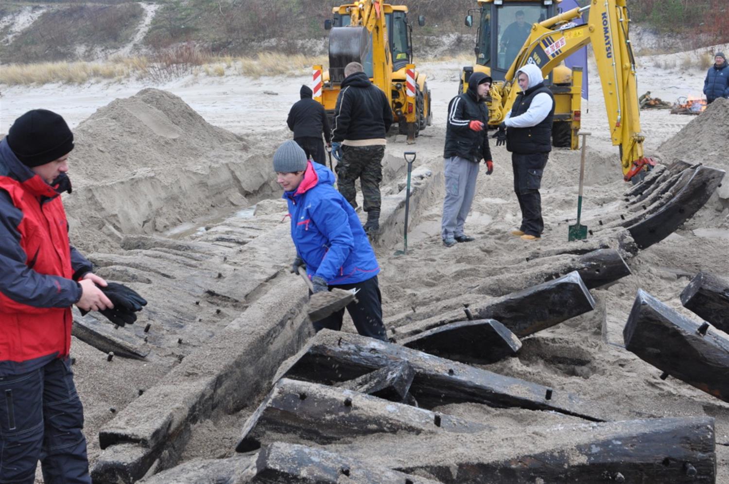 Jak już informowaliśmy, na początku października, podczas sztormu, Bałtyk wyrzucił na plażę w Międzywodziu wraku statku i jego fragmenty. Od środy (7 grudnia) trwa akcja wydobycia cennego historycznie obiektu. Po inwentaryzacji na miejscu, podniesieniu i przewiezieniu do Kamienia Pomorskiego będzie eksponowany w tamtejszej marinie.