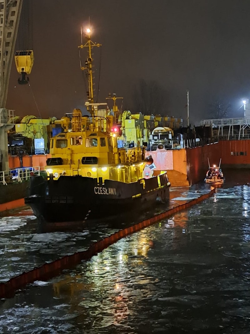 W Basenie Atlantyckim na terenie Euroterminala w Świnoujściu doszło dziś (21 grudnia) do wycieku oleju hydraulicznego z barki. Konieczna była neutralizacja rozlewu.