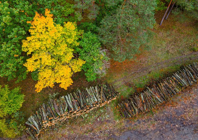 Od strony drogi ekspresowej las wygląda jak plantacja drewna.
