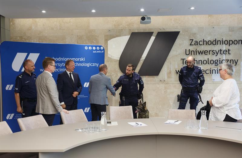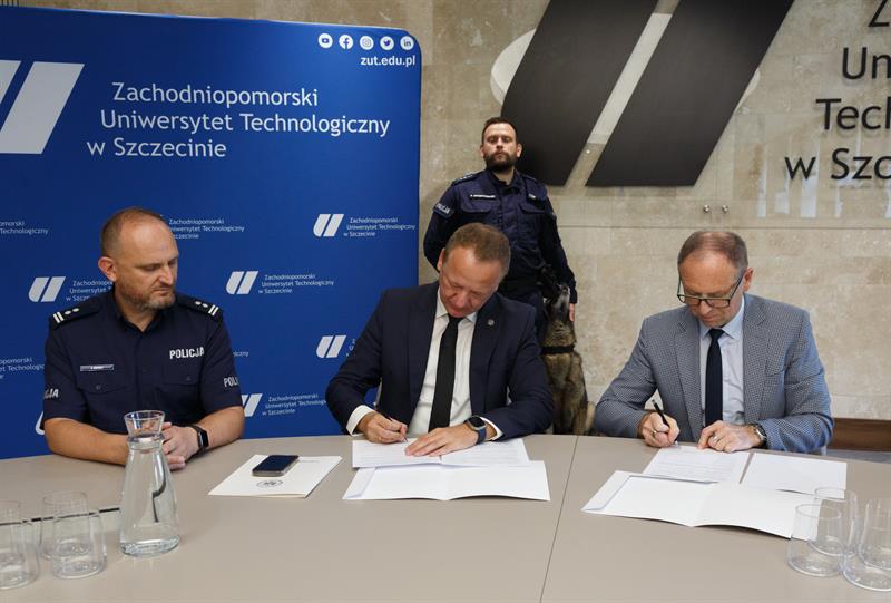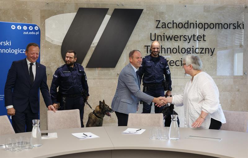 Zachodniopomorski Uniwersytet Technologiczny w Szczecinie dorzuci się do zakupu psa służbowego dla Komendy Miejskiej Policji. Porozumienie w tej sprawie w sali senatu ZUT podpisali rektor uczelni prof. Jacek Wróbel oraz zastępca Komendanta Wojewódzkiego Policji w Szczecinie dr Marek Jasztal.
