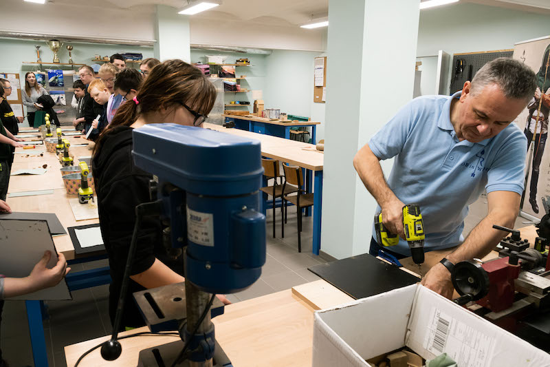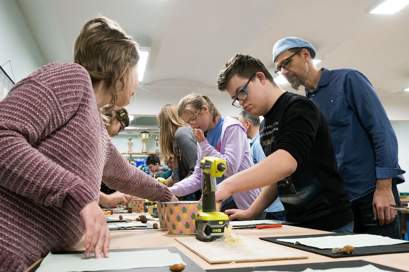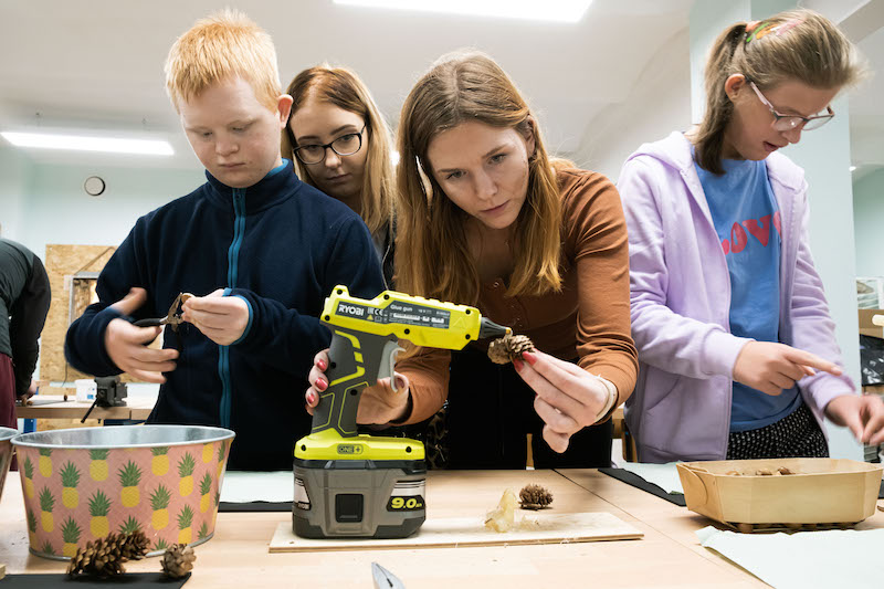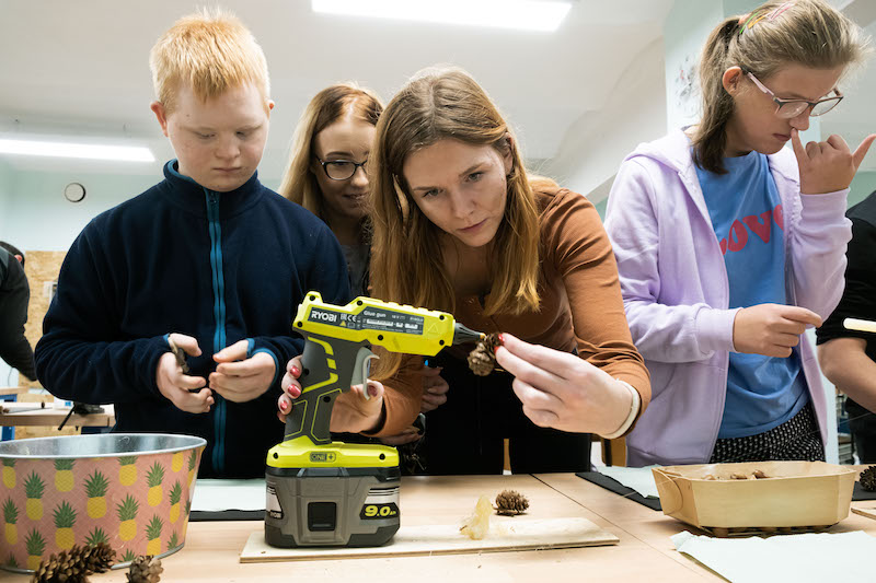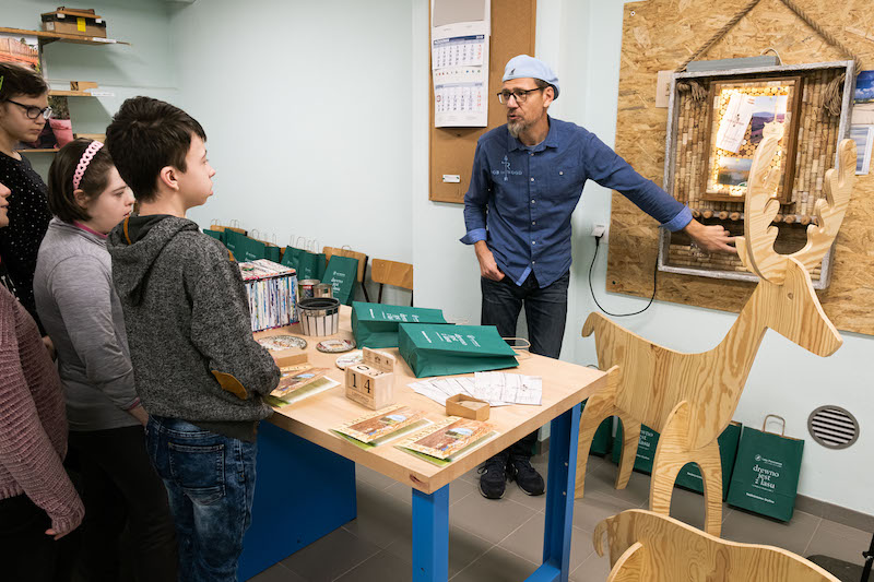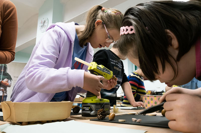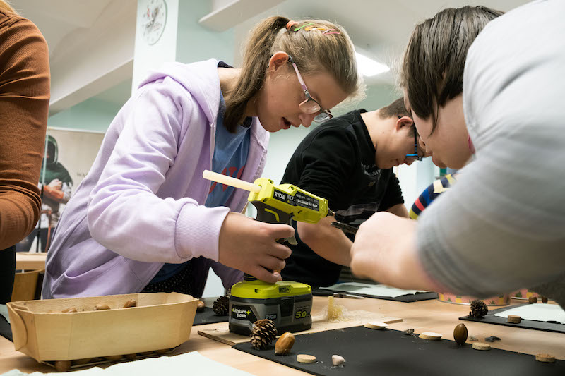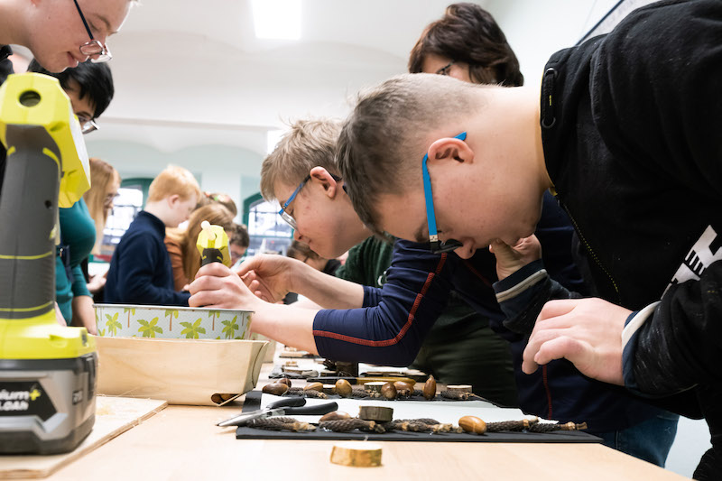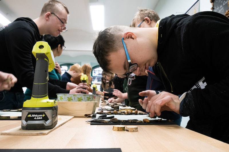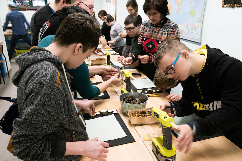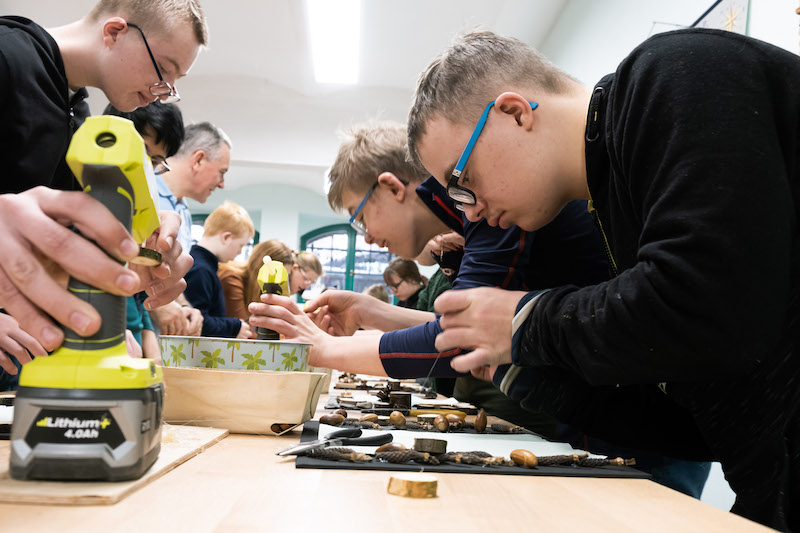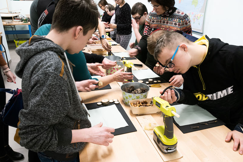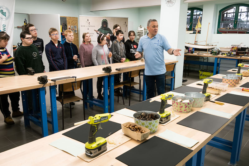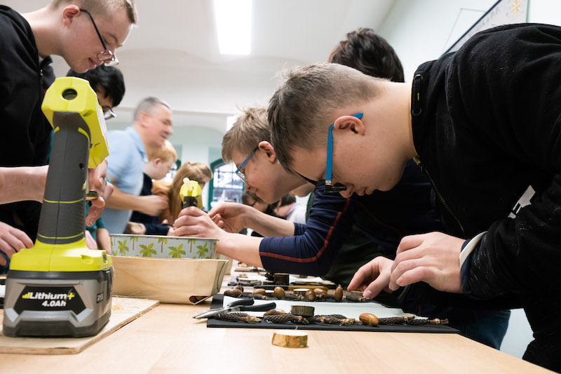 Każda z grup bierze udział w części prelekcyjnej oraz warsztatowej, na której uczestnicy mogą samodzielnie wykonać dla siebie lub bliskich pamiątkowy upominek z drewna. - Wspólnie z Nadleśnictwem Gryfino zaproponowaliśmy wykonanie tablic kredowych ozdobionych darami lasu, czyli żołędziami, szyszkami oraz przedmiotami, które są już niepotrzebne - dodaje Waldemar Sokalski.