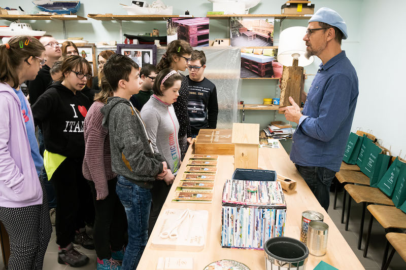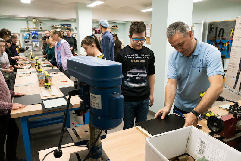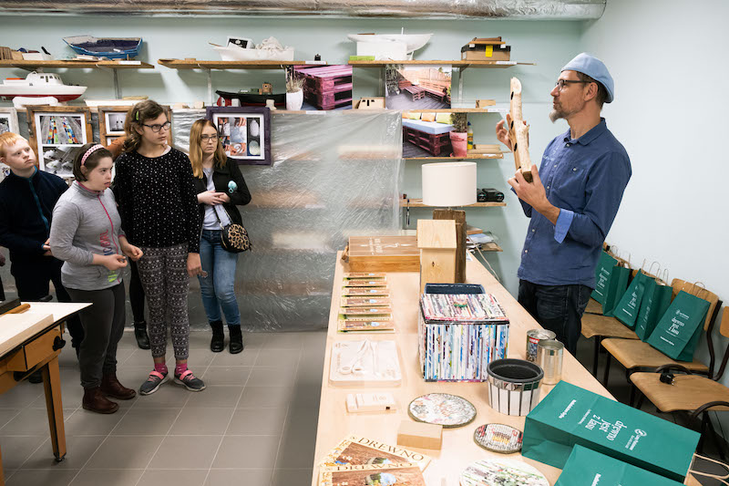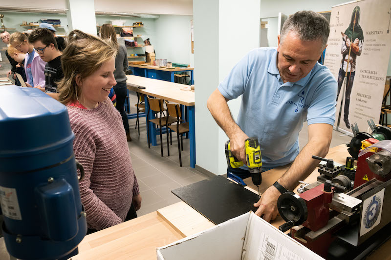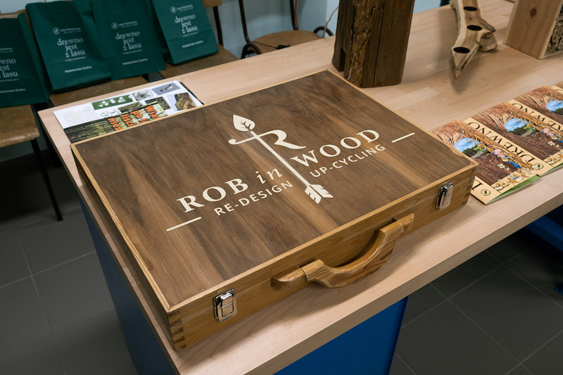- Zapoznajemy młodzież i osoby dorosłe z drewnem, techniką jego pozyskiwania, rodzajami i gatunkami. Następnie pokazujemy, co można zrobić z tego naturalnego materiału - mówi Waldemar Sokalski, „połowa projektu" Rob in Wood. - Chcemy również uczulić ludzi na ekologię. Zwracamy uwagę na to, że nie można marnować drewna, ani zaśmiecać lasu.