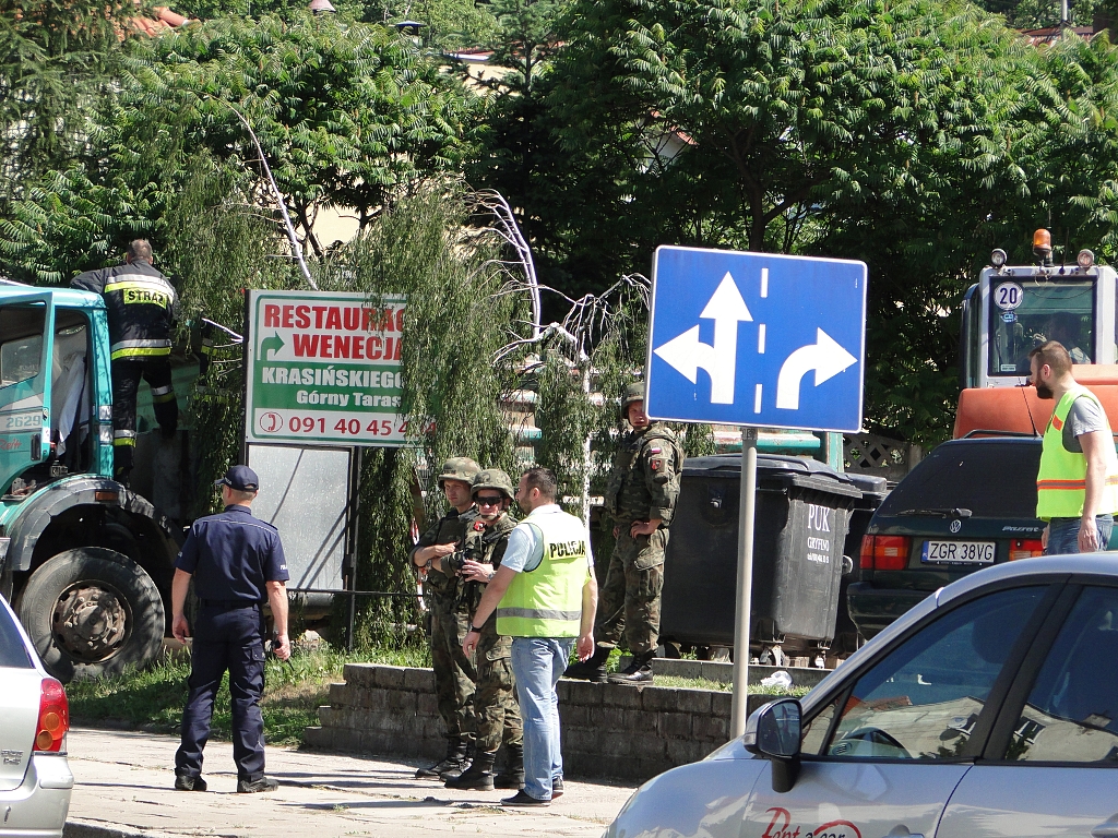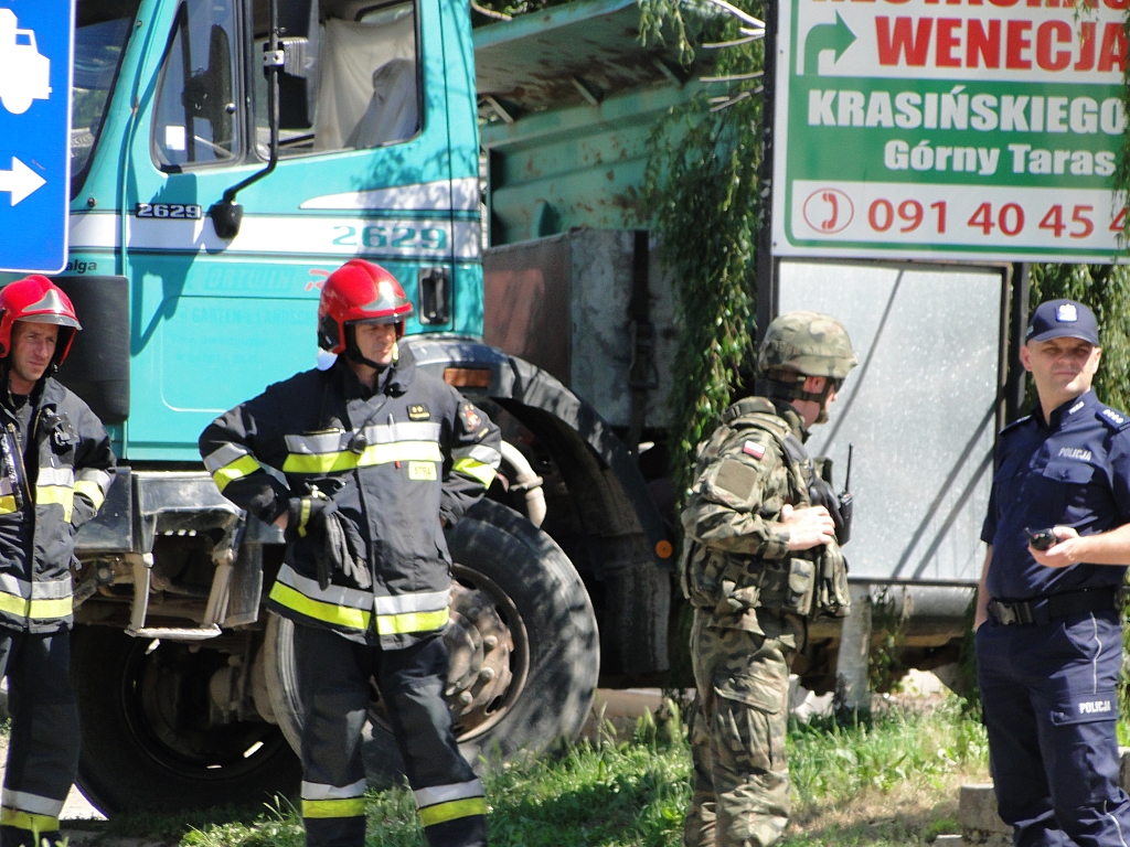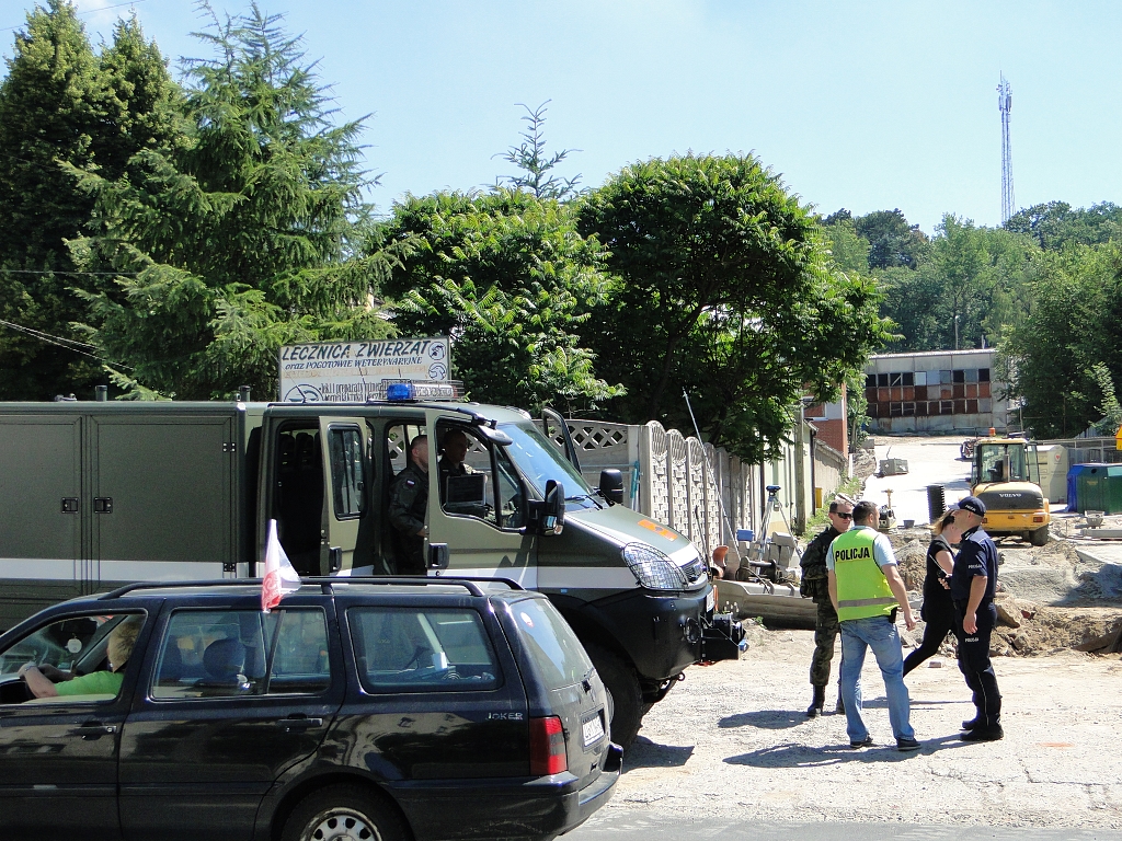 Ok. g. 11.40 patrol saperski w asyście policji wywiózł z miasta niebezpieczne znalezisko z czasów drugiej wojny światowej. Na czas transportu zamknięto część ulicy Łużyckiej. Akcją kierował nadkomisarz Mariusz Łętowski zastępca Komendanta Powiatowego Policji w Gryfinie. Duża grupa służb mundurowych zabezpieczała teren działań saperów z jednostki w Podjuchach. Pocisk o wadze ok. 250 kg przypadkiem wykopali robotnicy pracujący przy budowie drogi do nowej komendy policji. Saperzy nie podają bliższych szczegółów na temat wykopanego pocisku, gdyż był on mocno oblepiony ziemią. Akcja przebiegała sprawnie, a po jej zakończeniu szybko przywrócono ruch na Łużyckiej, zarówno dla zmotoryzowanych, jak i pieszych.