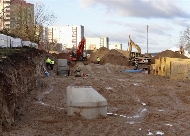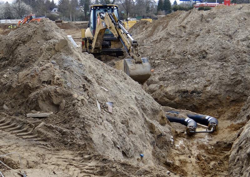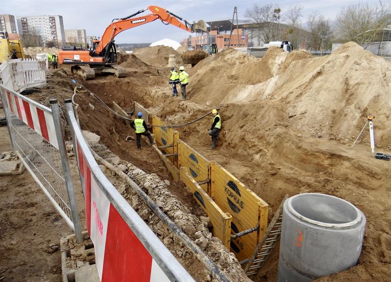 W tym miesiącu drogowcy powinni uporać się także z układaniem nowych rur ciepłociągu. Po wstępnym zniwelowaniu wzniesienia i następnie po usunięciu pasa starego chodnika wzdłuż skarpy od strony ogródków działkowych z użyciem ciężkiego sprzętu trwają wciąż wykopy pod instalację kanalizacyjną na odcinku między rondem Jana Olszewskiego i rondem Szczecińskich Olimpijczyków.