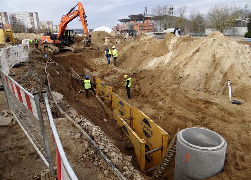 Do tej pory praktycznie ukończona została większość prac rozbiórkowych przy starym uzbrojeniu i sukcesywnie – krok po kroku – cały teren, tam gdzie jest to możliwe, uzbrajany jest w nowe odcinki rur wodociągowych, kanalizacji deszczowej i kanalizacji sanitarnej, instalacje gazową, elektroenergetyczną i teletechniczną.