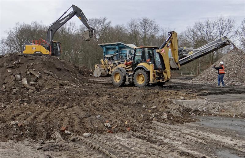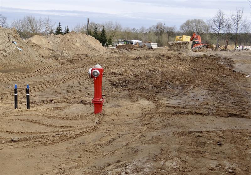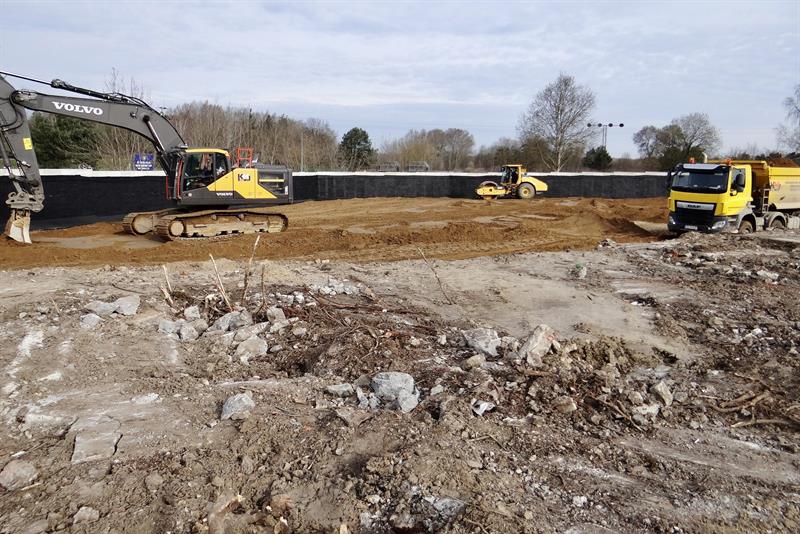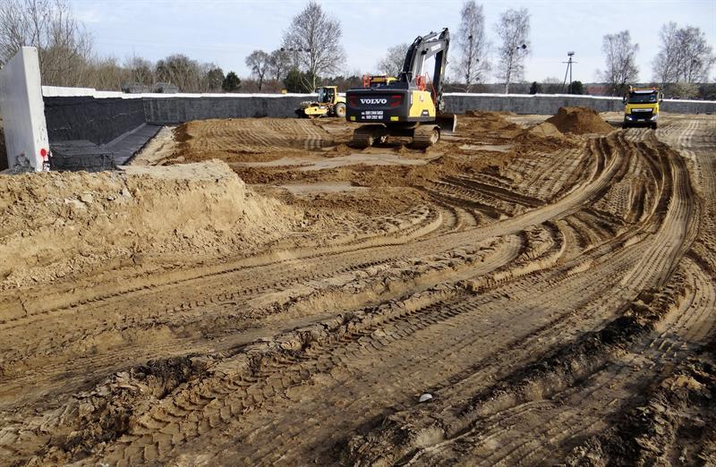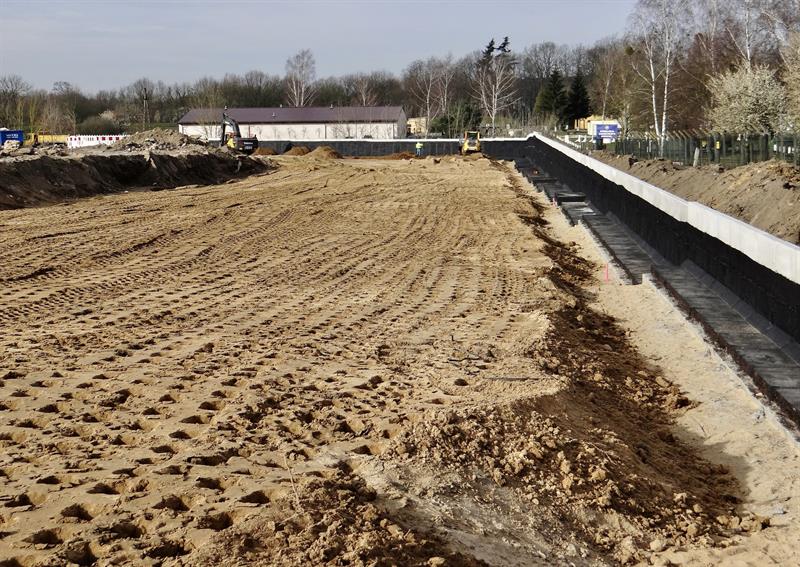 Na wydzielonym terenie pod przyszłą pętlę tramwajowo-autobusową po wykarczowaniu tam wszystkich drzew i odhumusowaniu ustawiona została już konstrukcja muru oporowego. Wzniesiony on został w bezpośrednim sąsiedztwie betonowej drogi, która prowadzi do pobliskiej strzelnicy wojskowej na terenie znajdującej się obok jednostki. Teraz wywrotki zwożą tam nowy urobek, którym na wysokość muru szeroki pas terenu jest teraz wypełniany i niwelowany przez koparki i spychacze, a następnie warstwa po warstwie ubijany z użyciem walców.