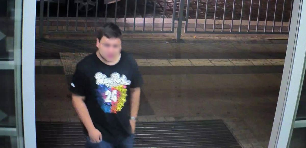 Funkcjonariusze publikują zdjęcia z nagrań monitoringu z wizerunkiem podejrzewanego o ten czyn mężczyzny.