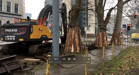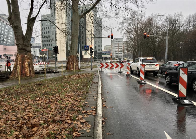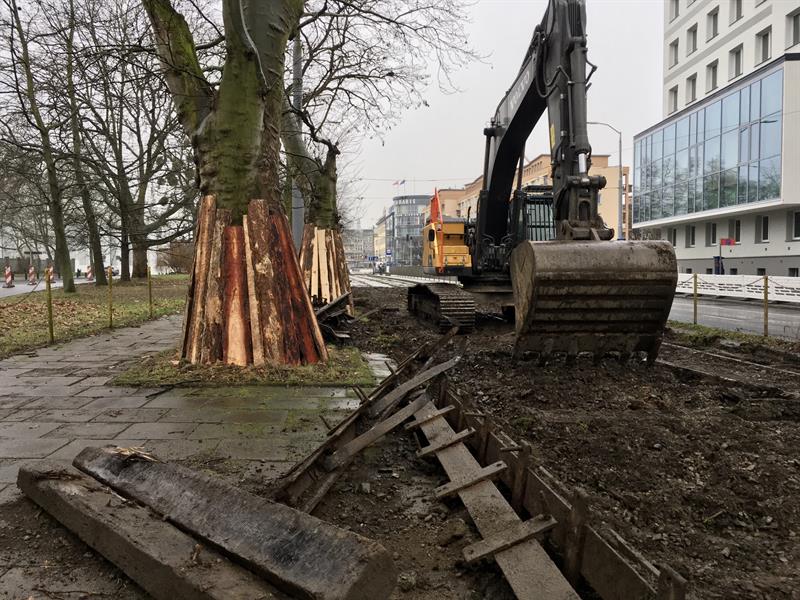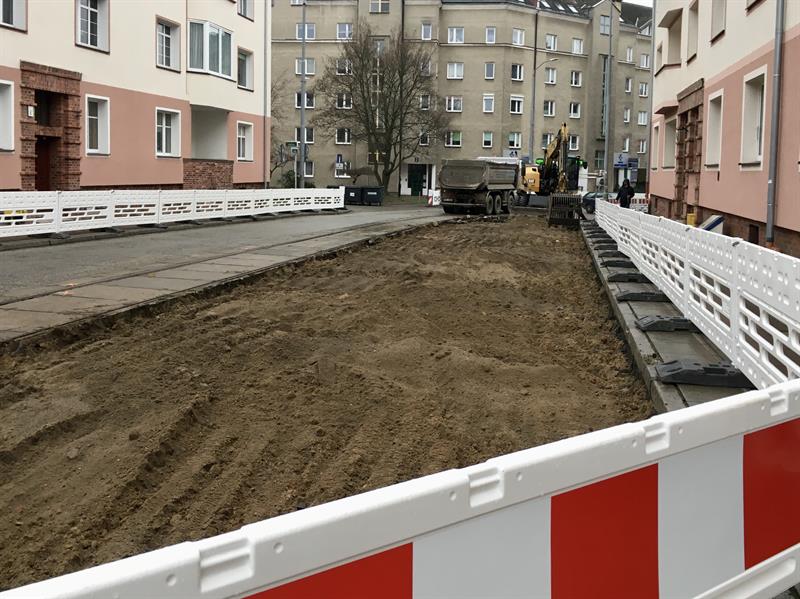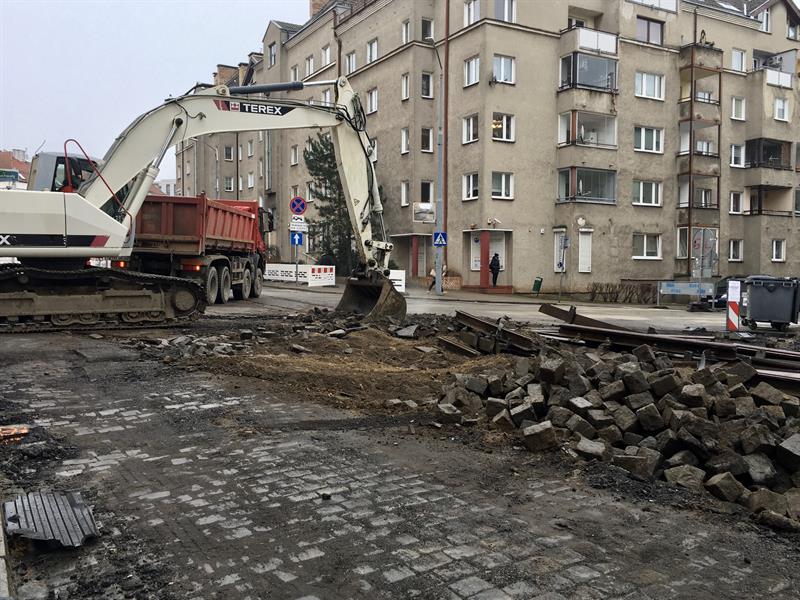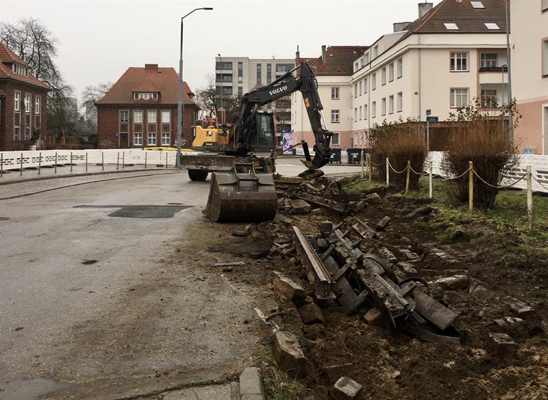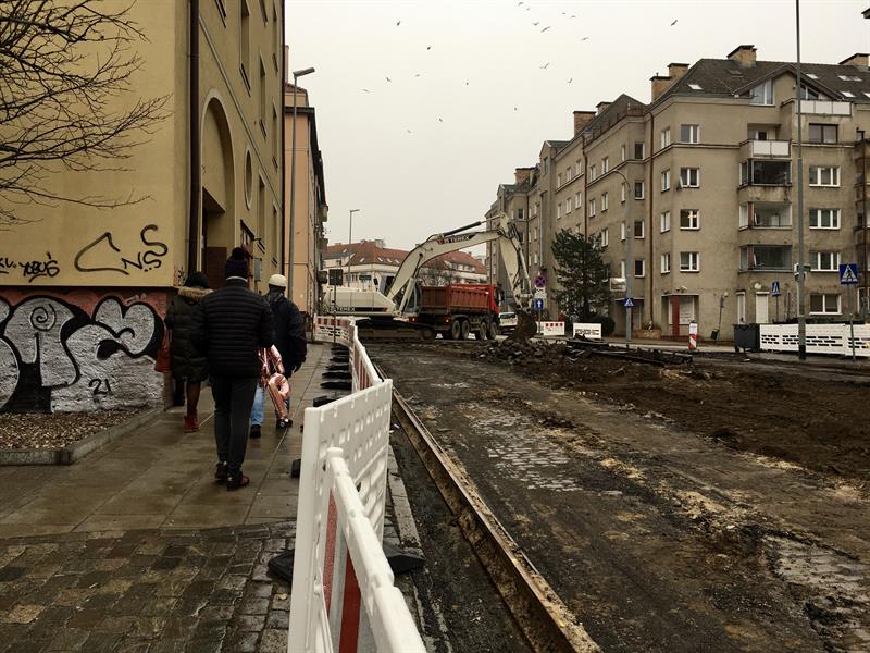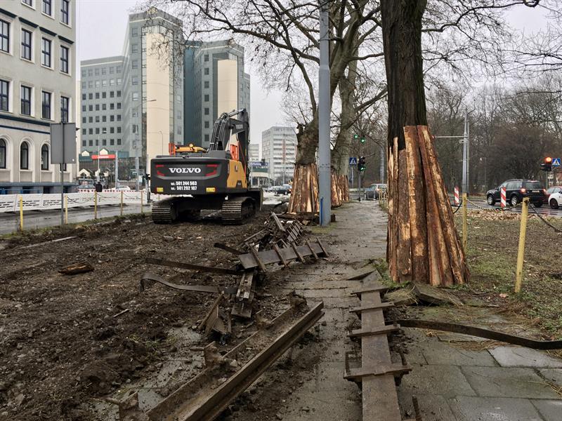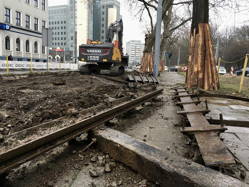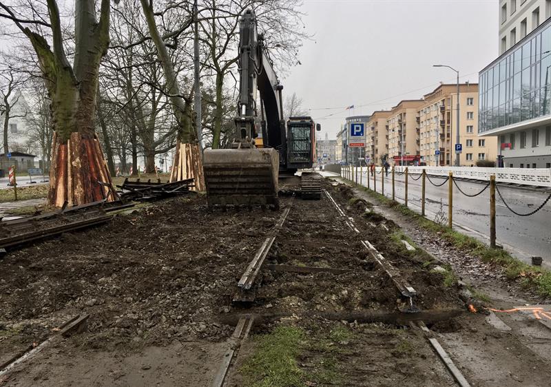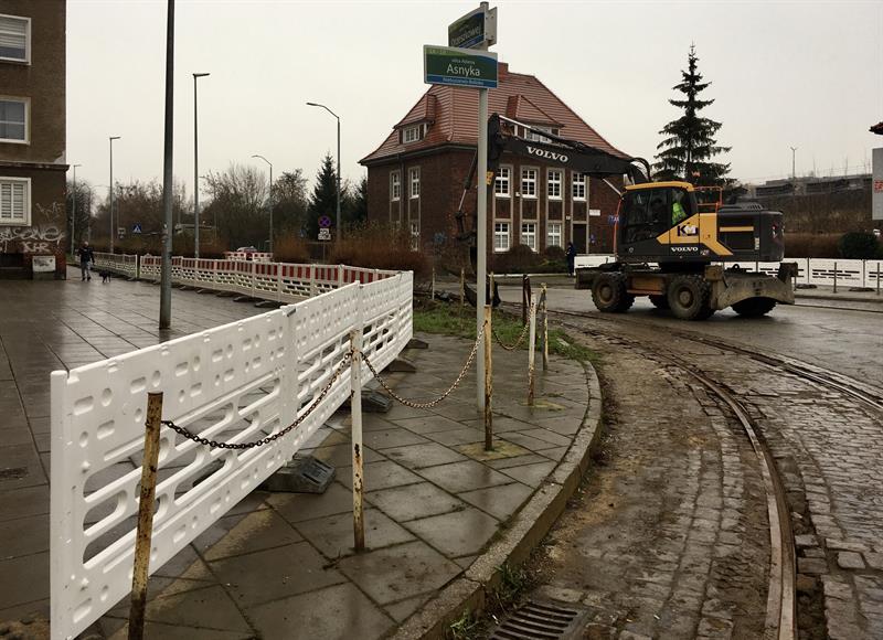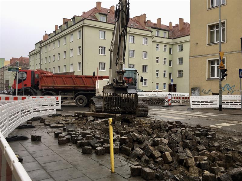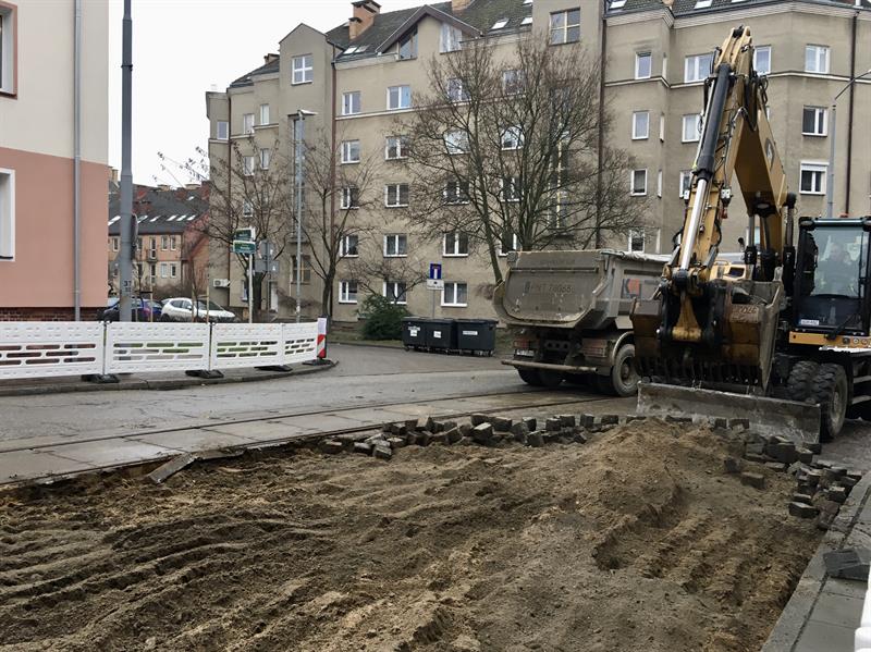 Z użyciem ciężkiego sprzętu, który tam wjechał od pierwszego dnia wprowadzenia blokad, ruszyły od rana prace rozbiórkowe samych torów, jak i nawierzchni jezdni wraz z tymi rejonami, gdzie dotąd były fragmenty pobocza z miejscami postoju, jak np. na łuku ul. Adama Asnyka do skrzyżowania z u. Elizy Orzeszkowej. ©℗