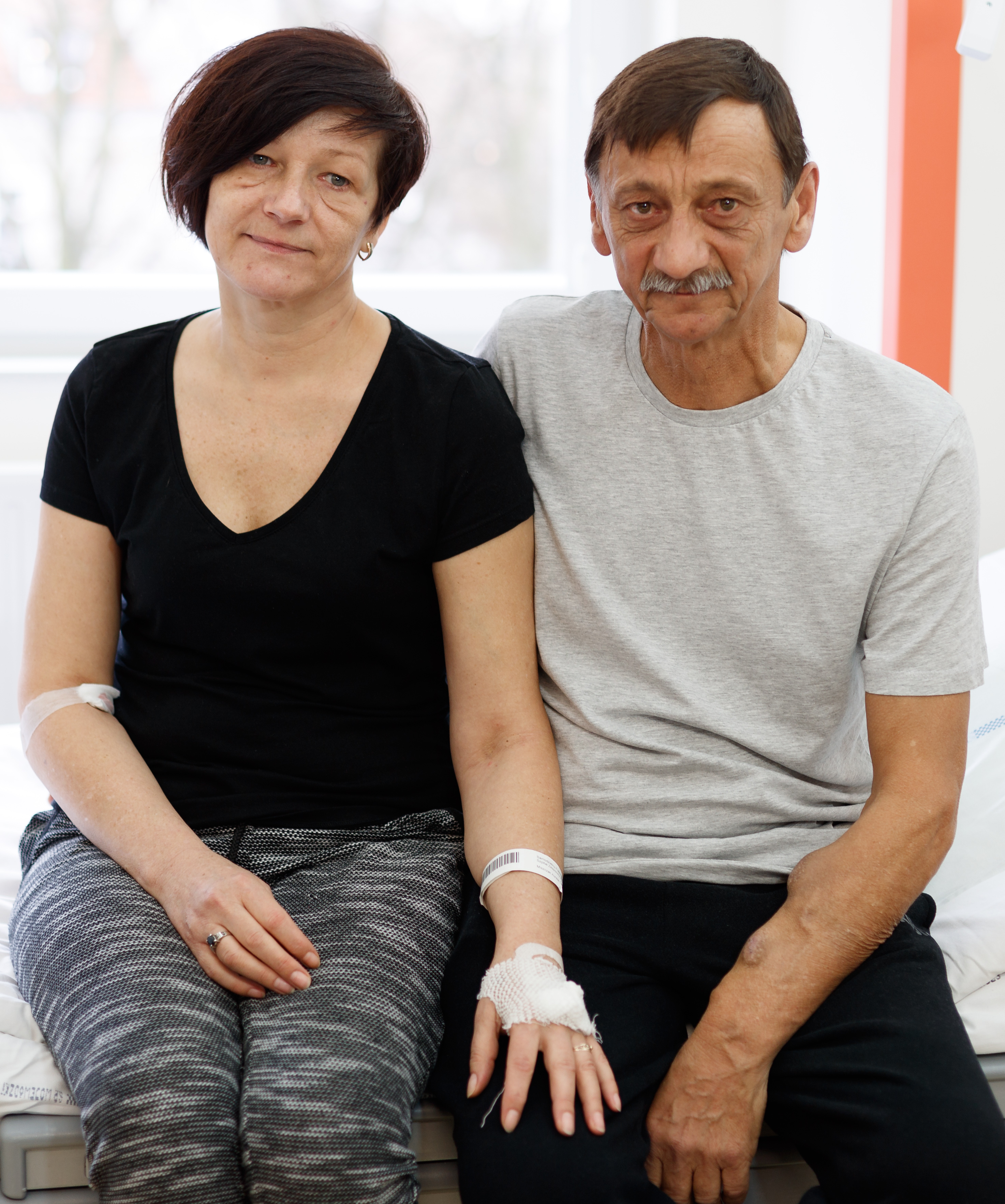 Na zdjęciu: pani Aurelia i pan Adam są już po operacji. Skorzystali z szansy, jaką daje przeszczep krzyżowy. Druga para była operowana w Warszawie. Wszyscy czują się dobrze.