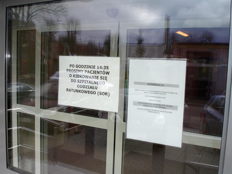 Na zdjęciu: Na oddziałach szpitala wojewódzkiego w Koszalinie umieszczone są informacje dla chorych, którzy cierpią na dolegliwości z powodu infekcji dróg oddechowych.