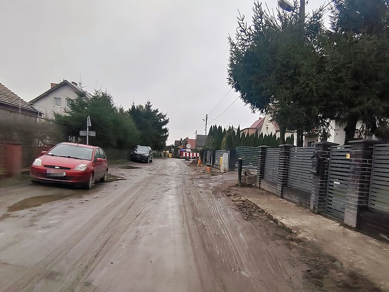 Na ul. Sadowej w Stargardzie trwa przebudowa drogi. Roboty prowadzi firma Musing Bud.