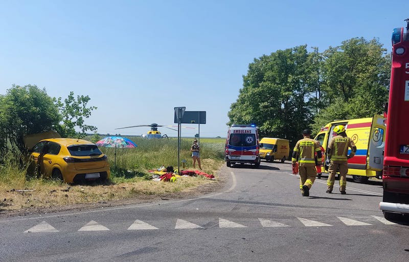 Czołowo zderzyły się tam dwa samochody osobowe. Na miejsce wypadku przyjechały trzy zespoły ratownictwa medycznego. Lądował też śmigłowiec Lotniczego Pogotowia Ratunkowego.