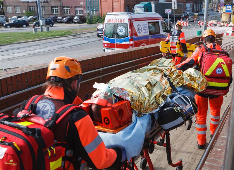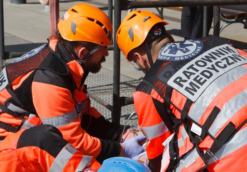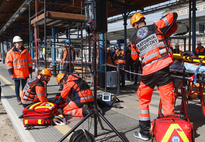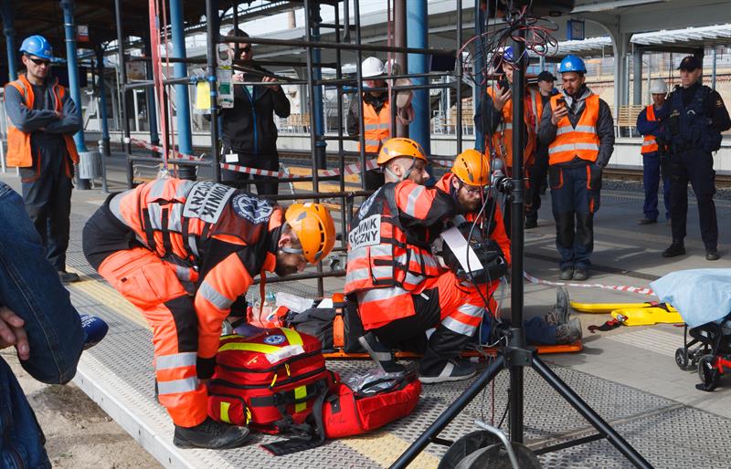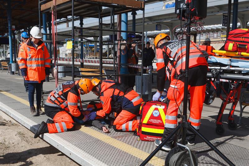 Szczeciński dworzec był odpowiednim miejscem do przeprowadzenia takiej symulacji, bo trwa na nim przebudowa peronów i pracują tam robotnicy. Ratownicy medyczni Wojewódzkiej Stacji Pogotowia Ratunkowego w Szczecinie zademonstrowali, jak prawidłowo udzielić pomocy osobie, która spadła z wysokości.