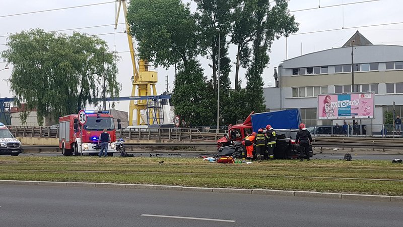 Do zderzenia trzech samochodów, w tym ciężarówki, doszło w piątek rano na ul. Gdańskiej w Szczecinie. Wypadek miał miejsce 300 metrów przed wjazdem na Trasę Zamkową.