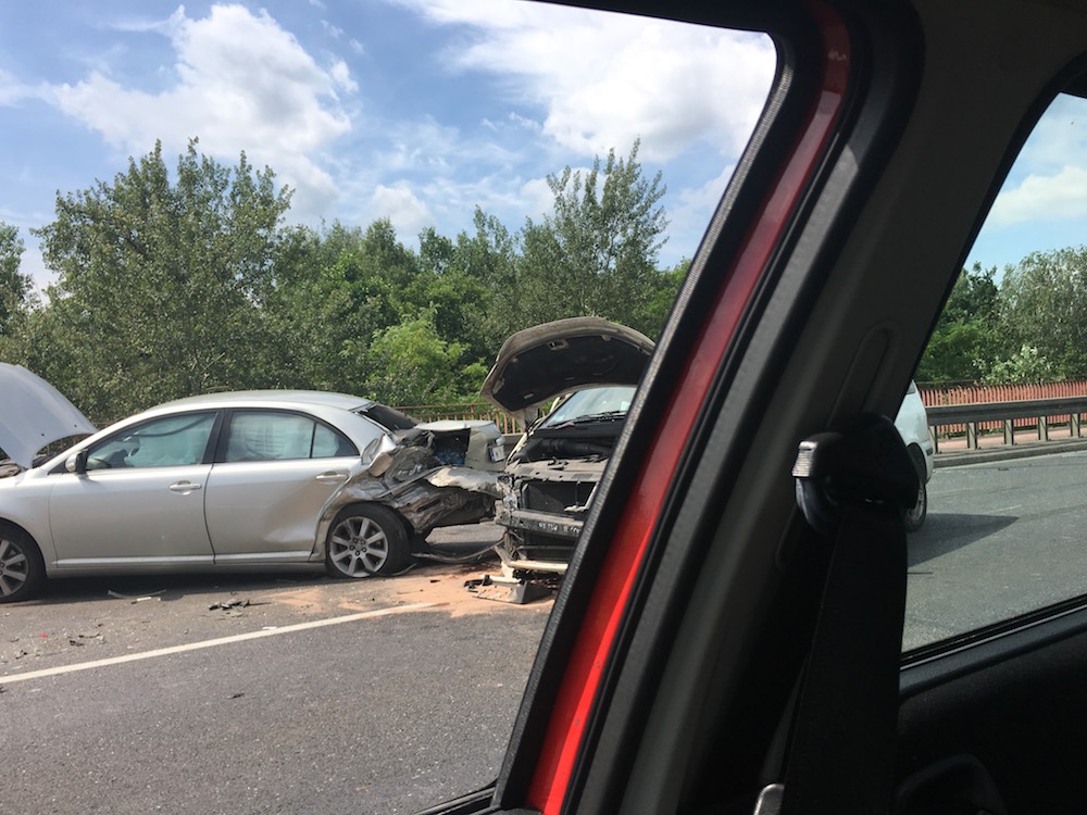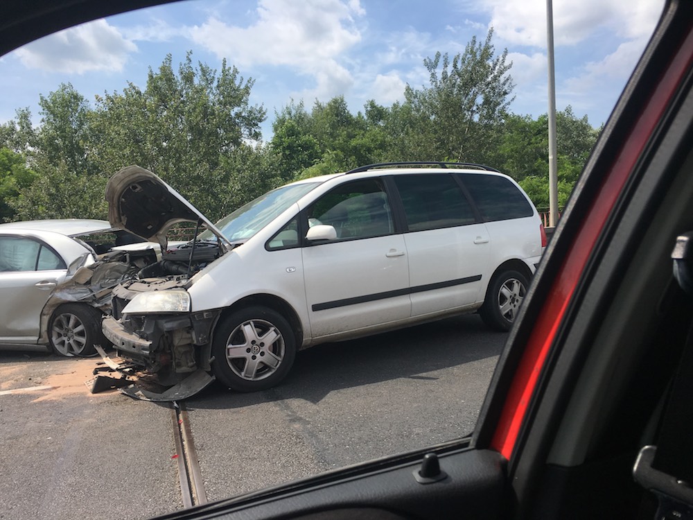 Dwa samochody osobowe - toyota i volkswagen zderzyły się przed południem na Moście Pionierów w Szczecinie. W wypadku ranna została jedna osoba.