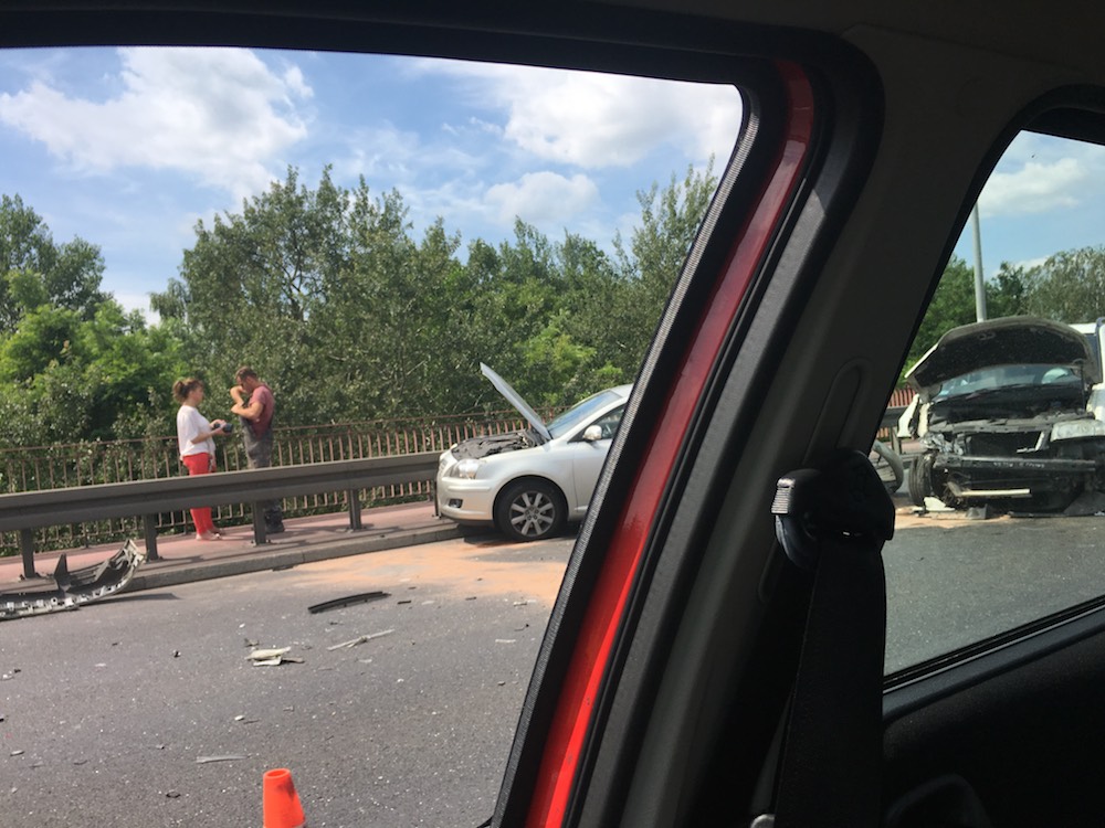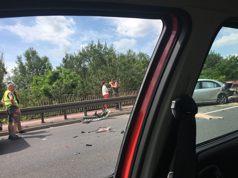 Jego efektem są utrudnienia w przejeździe Mostem Pionierów w kierunku prawobrzeża, gdyż drożny jest tylko jeden pas ruchu. W związku z tym utworzyły się długie korki sięgające Trasy Zamkowej. (k)