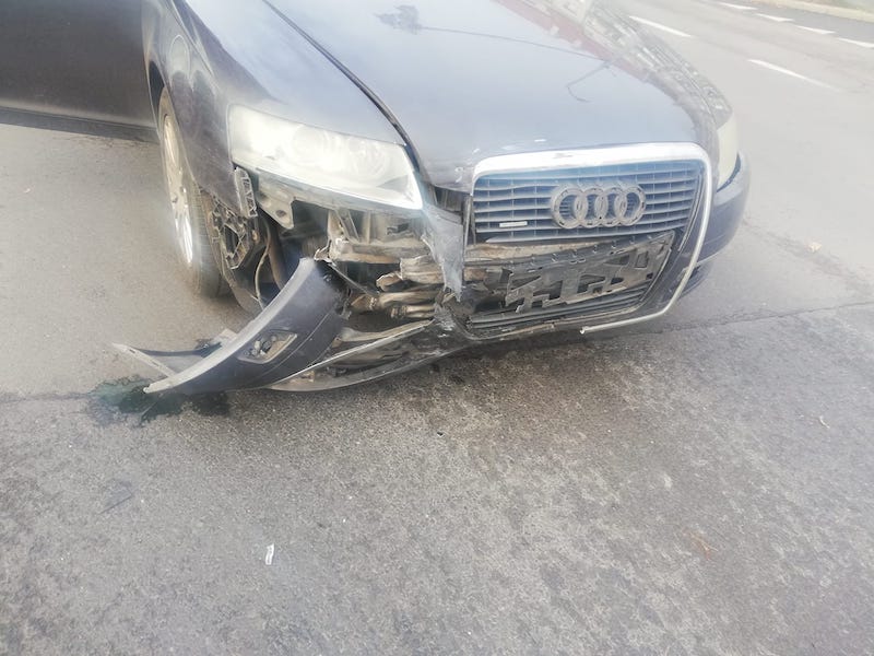 W wyniku zderzenia dwóch samochodów ucierpiała jedna z osób jadących w pojeździe oraz kobieta, która znajdowała się w pobliżu miejsca zdarzenia. Wypadek spowodował spore utrudnienia w ruchu.