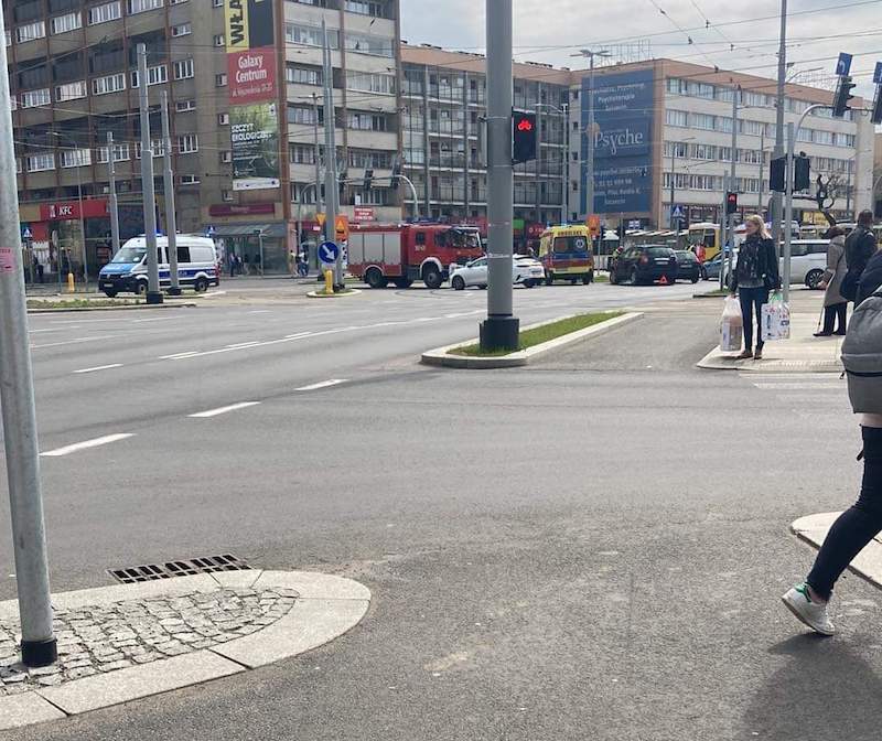 Zderzenie dwóch aut na pl. Rodła spowodowało w czwartek utrudnienia w ruchu samochodów i komunikacji miejskiej. Prawdopodobnie przyczyną wypadku było wymuszenie pierwszeństwa.