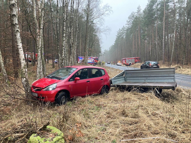 - Mężczyzna kierujący hondą z przyczepką wpadł w poślizg - mówi rzecznik stargardzkiej policji. - W wyniku tego przyczepka stanęła na jezdni bokiem. I w nią uderzył kierowca renault. Oba auta wpadły do pobliskiego rowu.