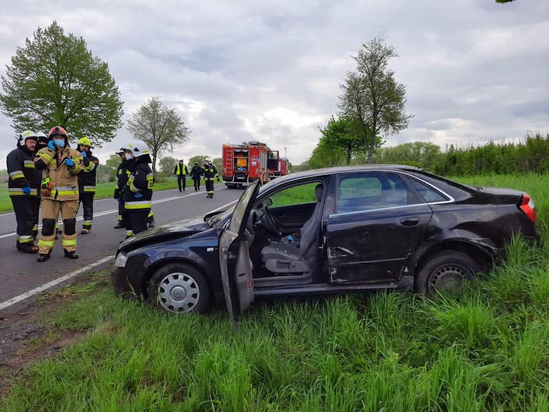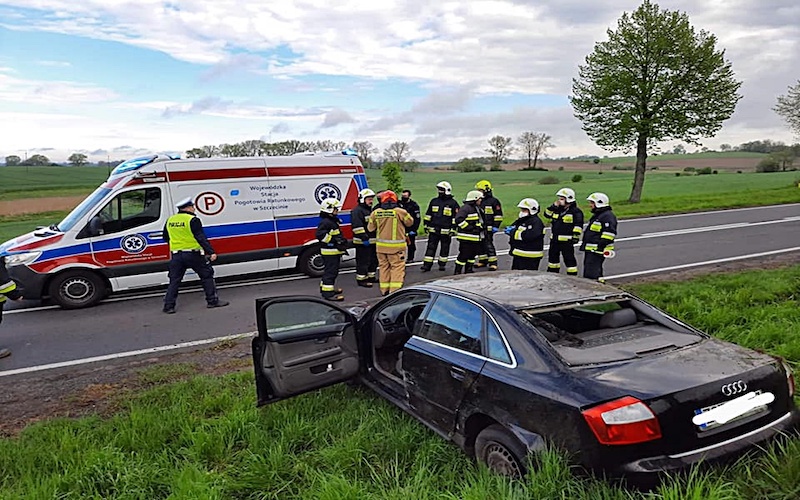 Jak informują służby, kobieta, która kierowała hyundaiem zjechała na przeciwległy pas ruchu i zderzyła się z audi, które jechało z naprzeciwka. Audi dachowało.