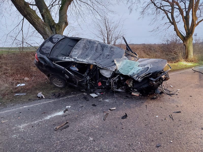 Typowo wioskowa jazda tym razem skończyła się na drzewie . Szkoda drzewa