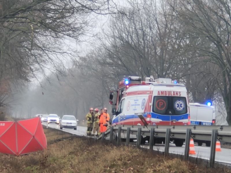 wyjaśniają okoliczności tego zdarzenia. Droga jest całkowicie zablokowana.