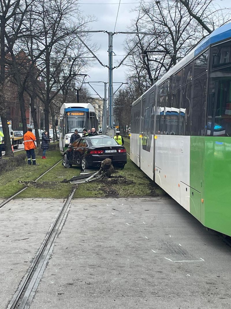 Do groźnie wyglądającego wypadku doszło przed godz. 12 w szczecińskiej al. Piastów. Pod tramwaj linii 12 wjechał samochód osobowy.