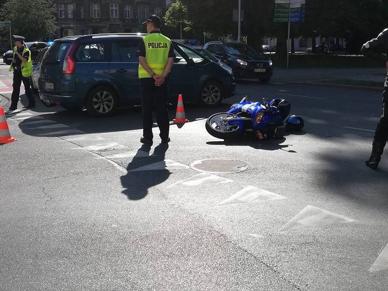 Do wypadku z udziałem motocyklisty doszło w sobotę po południu na pl. Grunwaldzkim w Szczecinie. Jak informuje policja, kierujący jednośladem uderzył w samochód. Mężczyzna trafił do szpitala.