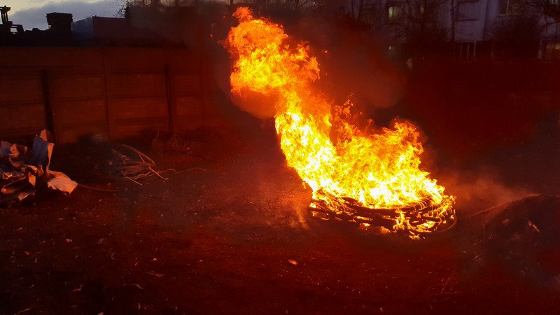 Niedawno strażnicy miejscy z Oddziału Zachód otrzymali zgłoszenie o bardzo dużym zadymieniu na Pomorzanach. Kłęby czarnego, duszącego dymu wzbijały się nad garażami w okolicach Tamy Pomorzańskiej. Po przybyciu na miejsce funkcjonariusze ujrzeli ognisty krąg z misternie ułożonych kabli.