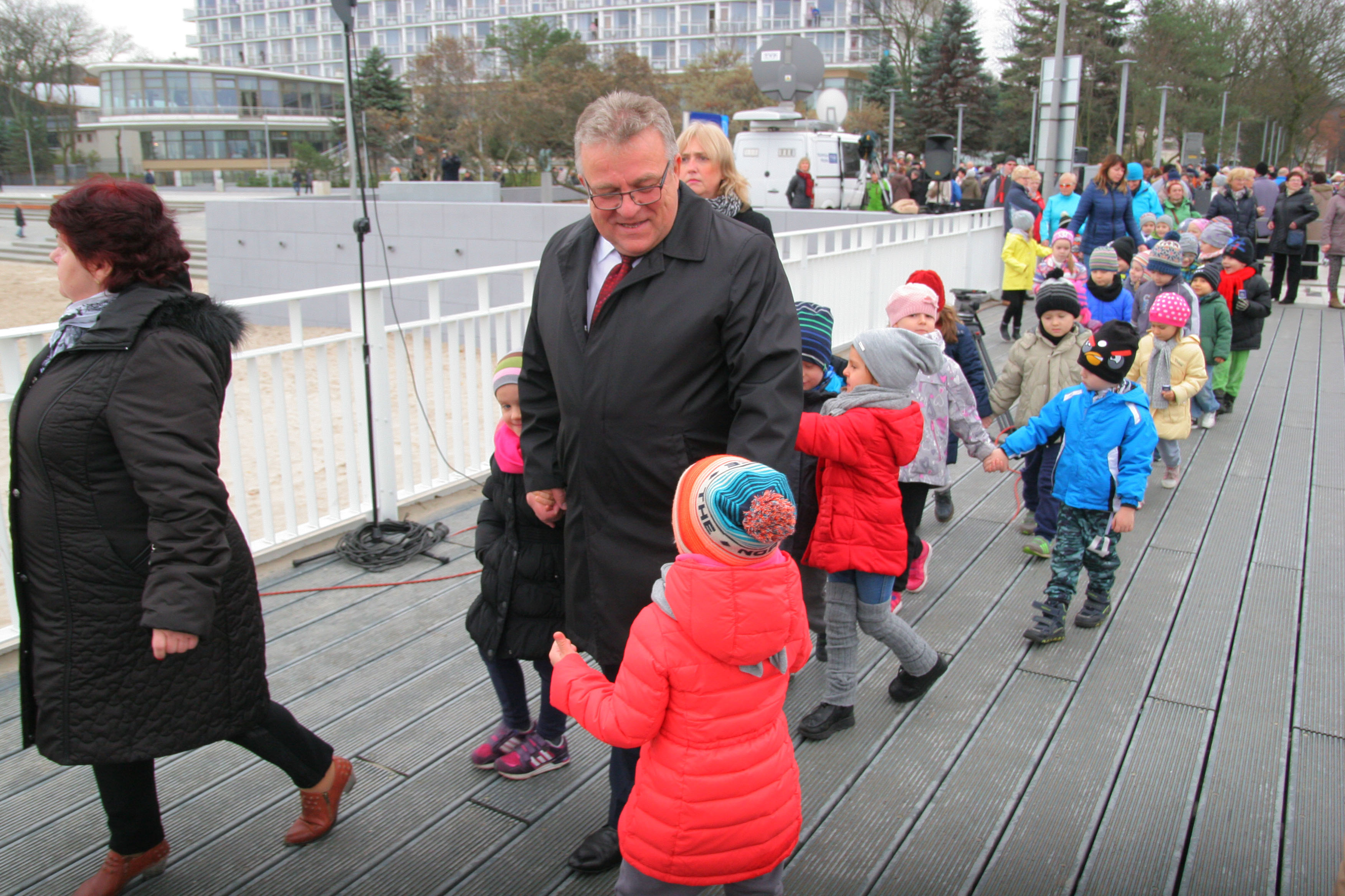 Zakończenie inwestycji, przy zgromadzonych przed molo tłumach, zakomunikował prezydent Kołobrzegu Janusz Gromek. Atrakcją uroczystości były między innymi pokazy zumby oraz… upominki rozdawane publiczności.©℗