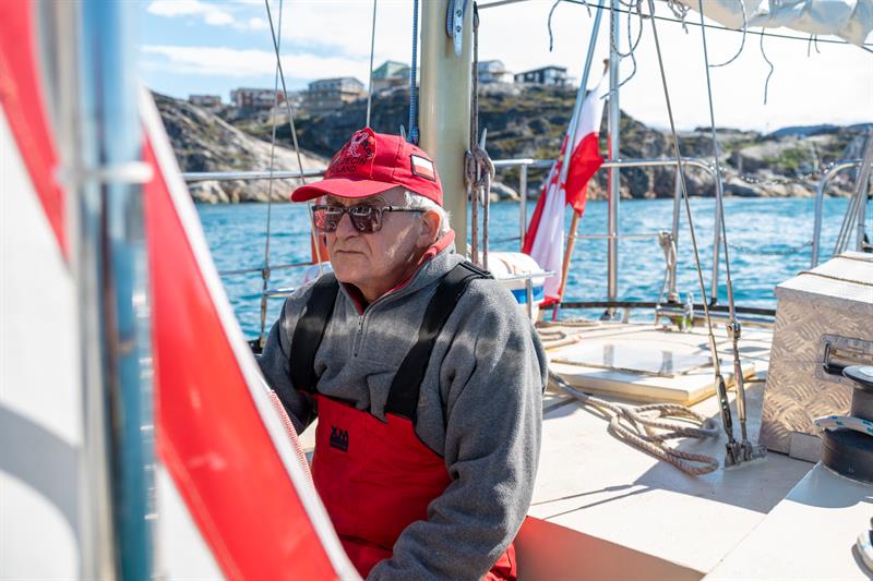 Kapitan Węgrzyn informował o wsparciu jakiego udzielają mu zamieszkujący Grenlandię Polacy. Przekroczył już koło podbiegunowe. Ostatnio przebywał w miasteczku Ilulissat. Tam dostał zaproszenie na odwiedzenie p. Gosi w miejscowości Aasiaat (pobyt 17-20.07.2022 r) na wysepce Saqqardlit. Popłynął tam z p. Zbigniewem Wyrozumskim, który wykonał te efektowne zdjęcia.