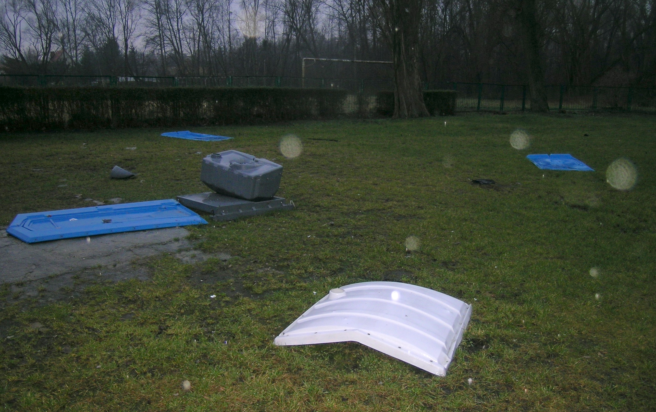 - Ze sobą mieli petardy oraz race. Jedną z nich podłożyli w przenośnej toalecie i odpalili. Wybuch był tak duży, że rozsadził toi toi od wewnątrz. Wyrwał wszystkie ściany, drzwi, dach, rury. Porozrzucał je na kilkanaście metrów. Po wszystkim sprawcy szybko wsiedli do samochodu i uciekli z miejsca zdarzenia. Na ich nieszczęście zarejestrował je monitoring. Sprawa, wraz z nagraniem, została przekazana policji- informuje Andrzej Kus, rzecznik prasowy miasta ds. gospodarki komunalnej i ochrony środowiska.