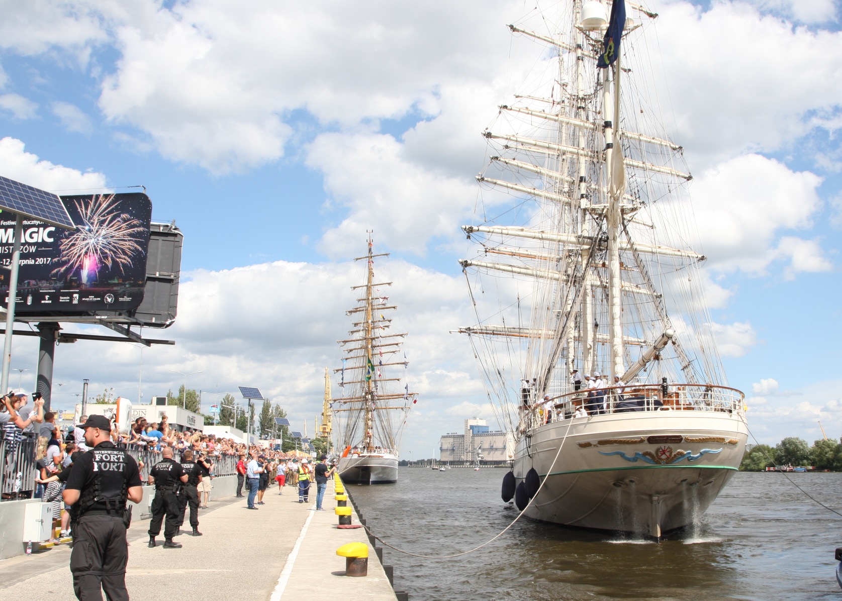 Przy nabrzeżu cumują już m.in. stacjonującego na co dzień w Rio de Janeiro 74-metrowego Cisne Branco oraz żaglowiec szkoleniowy Marynarki Wojennej Omanu „Shabab Oman II” (Młodzież Omanu). Obie jednostki są znane z poprzednich finałów The Tall Ships Races. Jest także La Grace z Czech będący repliką historycznego statku z drugiej połowy XVIII wieku. Zacumowali także Finowie z Joanna Saturna oraz Brytyjczycy z Ocean Scout.