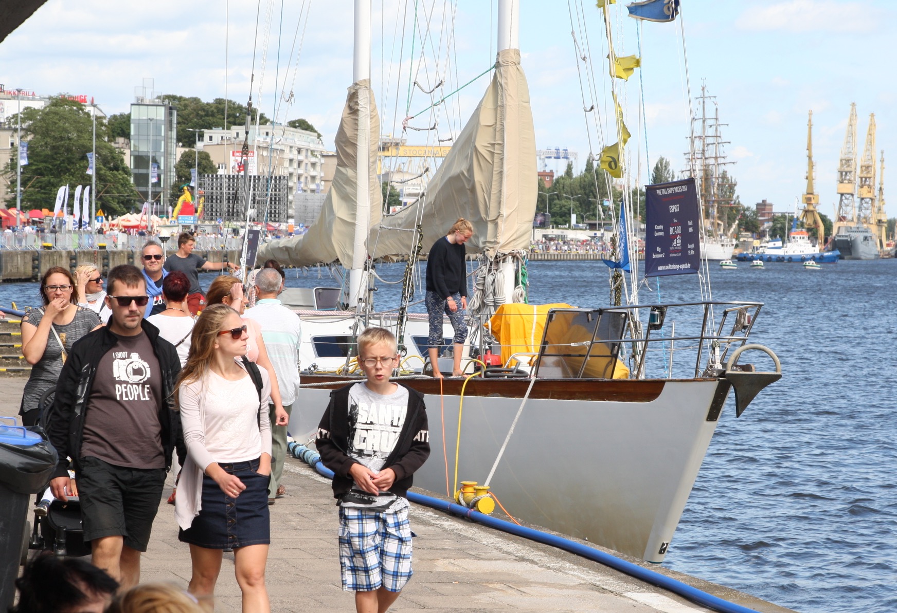 Przy Wałach Chrobrego wciąż przybywa jednostek biorących udział w finale regat i osób, które chcą zobaczyć ich przybycie.