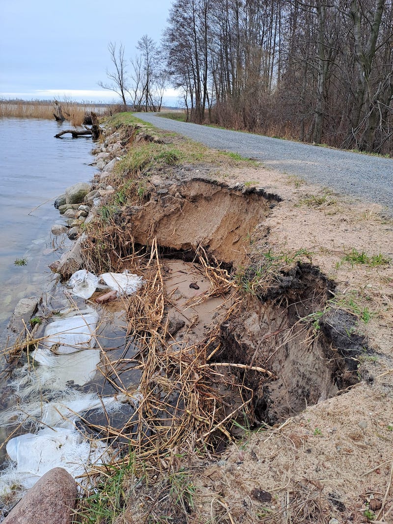 Związane z tym problemy pojawiają się także w innych miejscach regionu. W miejscowości Łojszyno (powiat kamieński) doszło do przecieku wału przeciwpowodziowego na brzegu Dziwny. W czwartek wieczorem strażacy próbowali go wzmacniać za pomocą worków z piaskiem. Podczas porannej kontroli przedstawicieli Gminy Wolin, funkcjonariuszy Państwowej Straży Pożarnej w Kamieniu Pomorskim i pracowników Wód Polskich okazało się, że nadal utrzymuje się podniesiony stan wody i wał znowu przecieka.